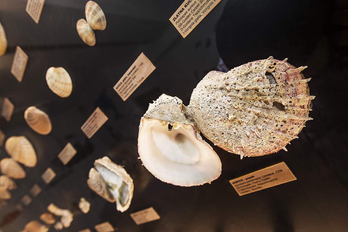 Im Aquarium befindet sich auch eine der größten Sammlungen Adriatischer Muscheln und Schnecken in Kroatien. Besucher können auf ca. 200 m² mehr als 100 Fischarten und 400 Arten von Muscheln und Schnecken entdecken.