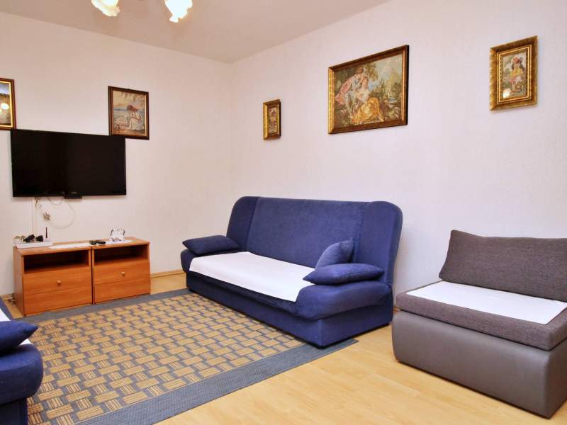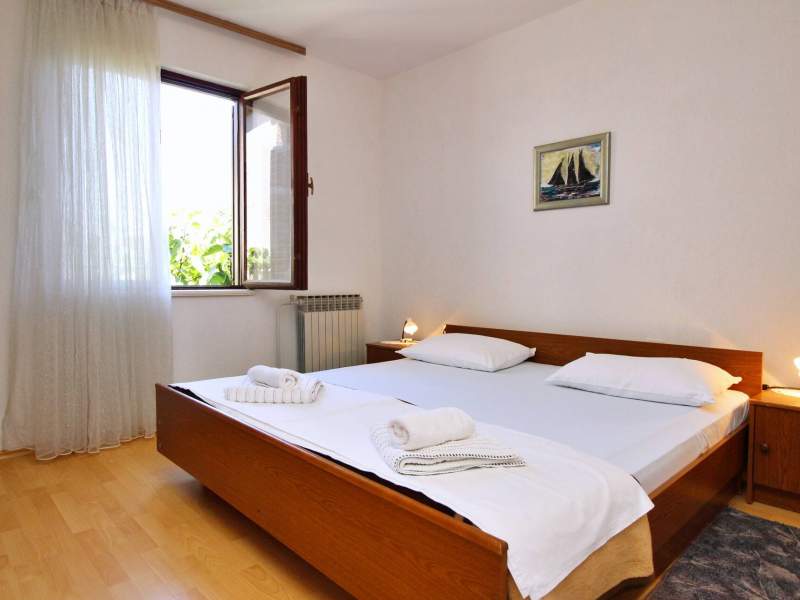 Genießen Sie Ihren Sommerurlaub in diesem gemütlichen Apartment im charmanten Fischerdorf Šilo auf der Insel Krk. Die Ortschaft ist für ihre Sand- und Kiesstrände, natürlichen Buchten und malerischen Wanderwege bekannt und bietet einen perfekten Rückzugsort. Dieses Apartment im ersten Stock bietet Platz für 4-5 Personen und verfügt über zwei Schlafzimmer (jedes mit einem Doppelbett) und ein Schlafsofa im Wohnzimmer. Die gut ausgestattete Küche umfasst einen Herd (Elektro/Gas), einen Backofen, einen Kühl-/Gefrierschrank, eine Kaffeemaschine, eine Mikrowelle, einen Toaster und einen Geschirrspüler. Das Wohnzimmer verfügt über einen Fernseher mit Satelliten- und Kabelkanälen.