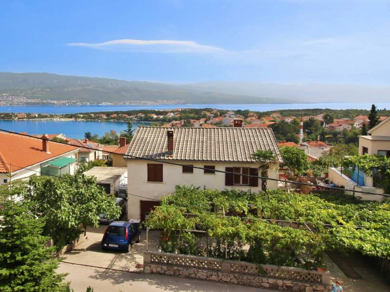 Genießen Sie Ihren Urlaub in diesem geräumigen Apartment für bis zu 4 Gäste auf der Insel Krk in der charmanten Ortschaft Šilo, die für ihre wunderschönen Sand- und Kiesstrände, natürlichen Buchten und malerischen Wanderwege bekannt ist. Das Apartment verfügt über zwei Schlafzimmer, jedes mit einem Doppelbett, ein Wohnzimmer mit Küche und Essbereich sowie ein Badezimmer mit Toilette, Dusche und Waschmaschine. Die Küche ist komplett ausgestattet mit einem Elektroherd, einem Backofen, einem Kühlschrank mit Gefrierfach, einer Kaffeemaschine, einem Wasserkocher, einer Mikrowelle und einem Toaster. Darüber hinaus verfügt das Apartment über eine geräumige 20 m2 große Terrasse mit Blick auf das Meer und die Stadt, die sich perfekt zum Entspannen eignet. Diese Unterkunft liegt etwa 500 Meter vom Stadtzentrum und 600 Meter vom nächsten Strand entfernt und bietet an Sommertagen Ruhe und Komfort. Zu den Annehmlichkeiten gehören eine Klimaanlage, WLAN und ein kostenloser Parkplatz. Das Apartment ist komfortabel eingerichtet und bietet alles, was Sie für einen erholsamen Urlaub benötigen. Haustiere sind gegen Aufpreis auch willkommen!