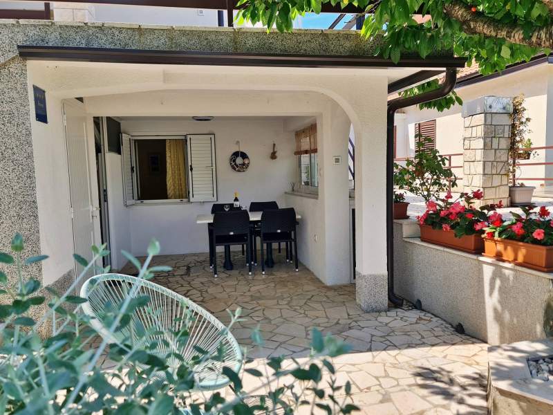 Dieses Apartment mit einem Schlafzimmer liegt nur 40 Meter vom Strand entfernt und bietet den perfekten Rückzugsort am Meer. Die 8 m2 große überdachte Terrasse lädt im Sommer zum Entspannen und Erholen ein. Sie können auch ein Sonnenbad auf den Liegestühlen im Hof genießen, wo Sie sogar einen Blick auf das atemberaubend blaue Meer erhaschen können. Der gemeinsame Hof in einem Mehrfamilienhaus fördert eine gemeinschaftliche Atmosphäre, während jede Wohnung über eine eigene private Terrasse verfügt. Genießen Sie gemeinsame Annehmlichkeiten wie eine Außendusche und einen Grill im Hof.