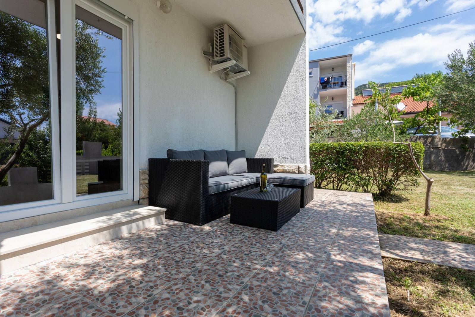 Super smo se proveli. Mjesto je bilo stvarno čisto, mirno i ima zelenu terasu s maslinama. Kuhinja je dobro opremljena i sve što možda nedostaje lako se može pribaviti. Do plaže je svega nekoliko minuta pješice, a dućan i restorani su u neposrednoj blizini. Domaćin je izuzetno susretljiv, ljubazan i prijateljski rapoložen.