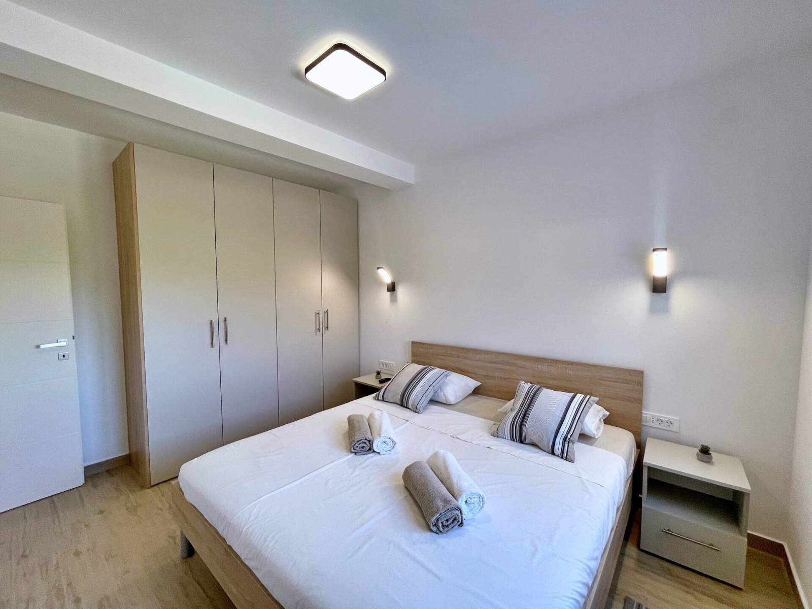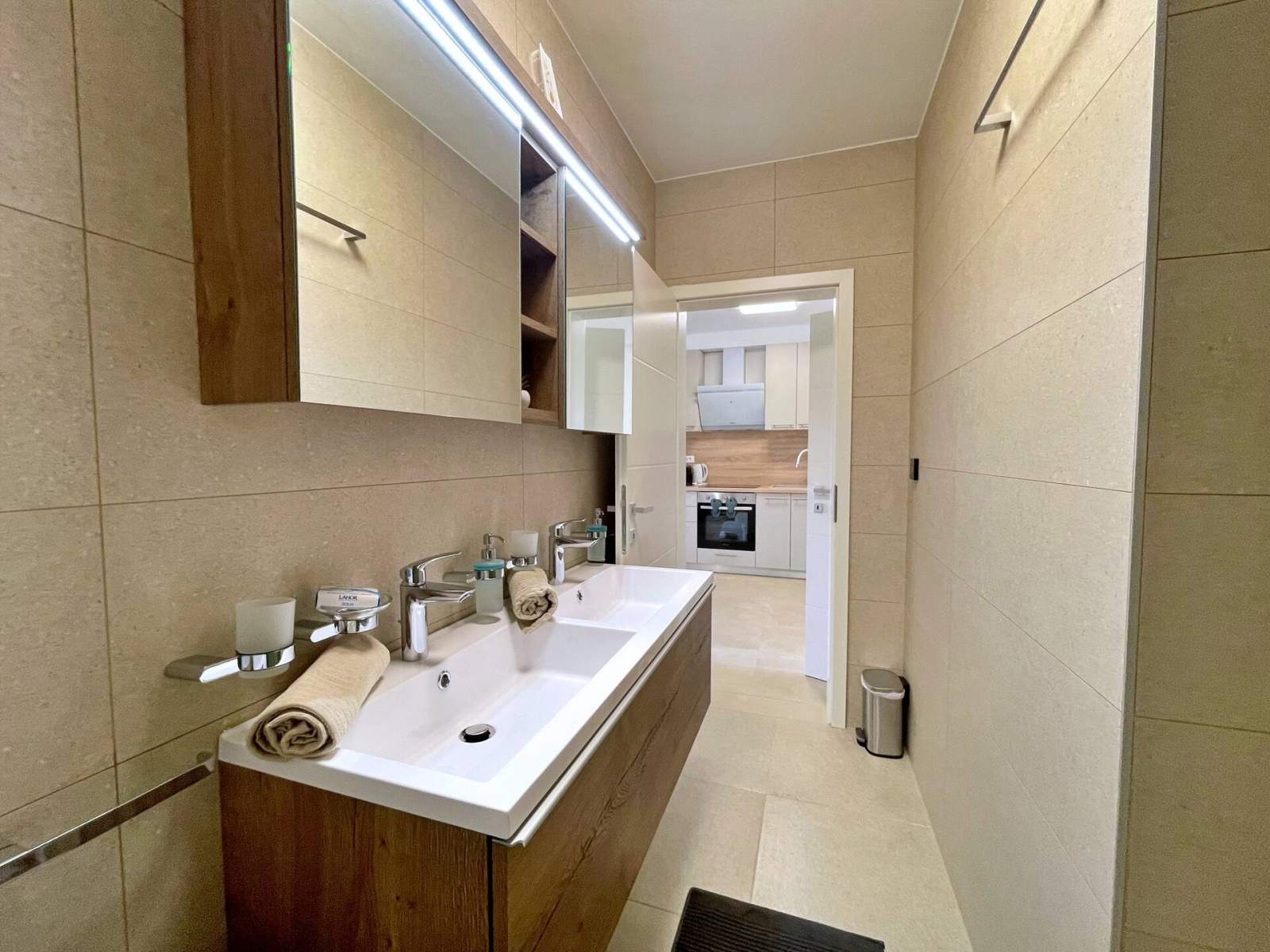 Dieses luxuriöse, moderne Apartment bietet kostenloses WLAN, kostenlose Parkplätze und Klimaanlage in jedem Zimmer. Es verfügt über zwei Schlafzimmer – eines mit einem Doppelbett, einem Kleiderschrank und einem Smart-TV und ein weiteres mit zwei Einzelbetten, einem Kleiderschrank und einem Smart-TV. Die geräumige Küche ist mit einem Induktionskochfeld, einem Backofen, einem großen Kühl- und Gefrierschrank, einer Nespresso-Kaffeemaschine, einem Wasserkocher, einem Toaster und einem Geschirrspüler sowie einer gemütlichen Sitzecke mit einem ausziehbaren Sofa für zwei weitere Gäste und einem Smart-TV ausgestattet.