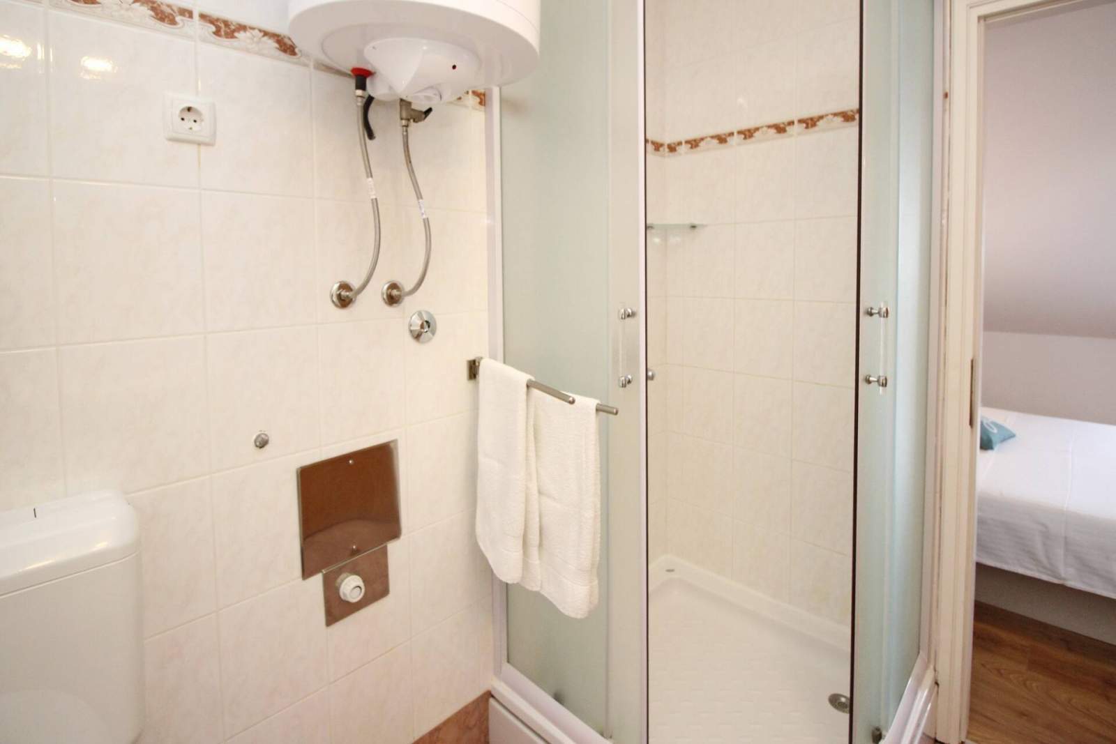 Es hat 1 Schlafzimmer (mit einem Doppelbett und ein Einzelbett), eine voll ausgestattete Küche mit Wohnzimmer, ein Badezimmer (Dusche, WC) und einen Balkon (6 m2).