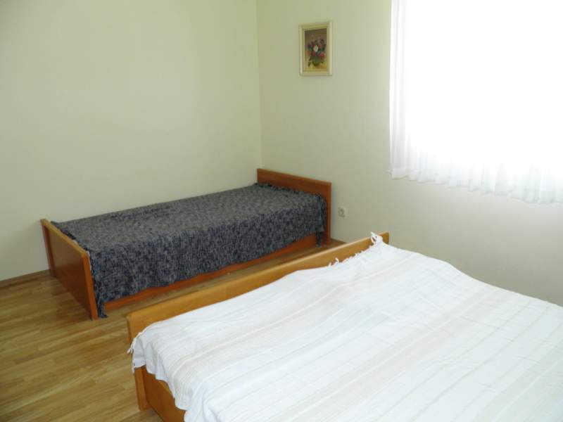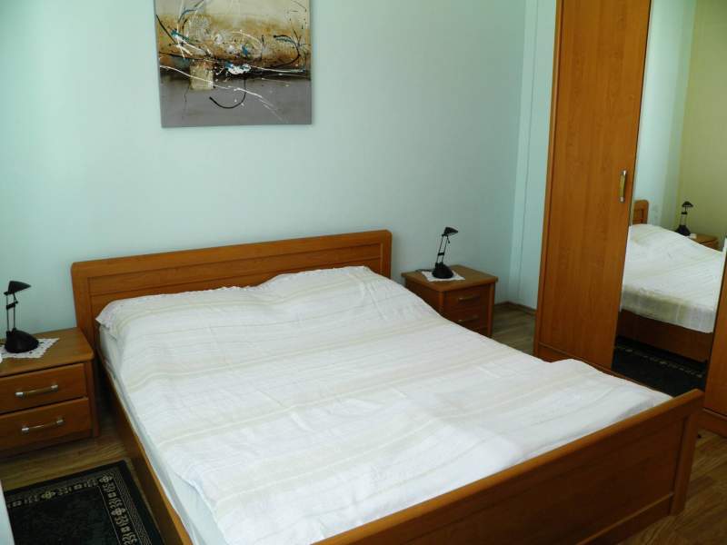 Es hat 1 Schlafzimmer (mit einem Doppelbett und ein Einzelbett), eine voll ausgestattete Küche mit Wohnzimmer (zusätzliches Bett auf der Couch), ein Badezimmer (Dusche, WC) und einen Balkon (5 m2).