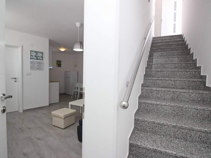 Das Apartment ist mit einer voll ausgestatteten Küche mit Wohnzimmer (ein zusätzliches Bett auf der Couch), einem Badezimmer (Dusche, Toilette) sowie einer Terrasse auf der oberen Etage (5 m2) ausgestattet.