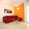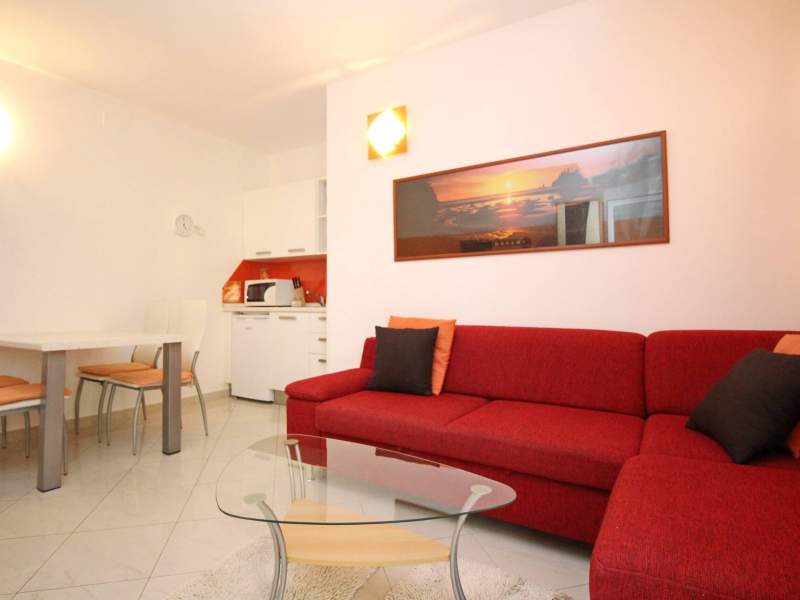 Das Apartment verfügt über eine Küche und ein Wohnzimmer mit Essbereich, ein Badezimmer (Dusche, Toilette, Waschmaschine) sowie eine überdachte, eingezäunte Terrasse (30 m2).