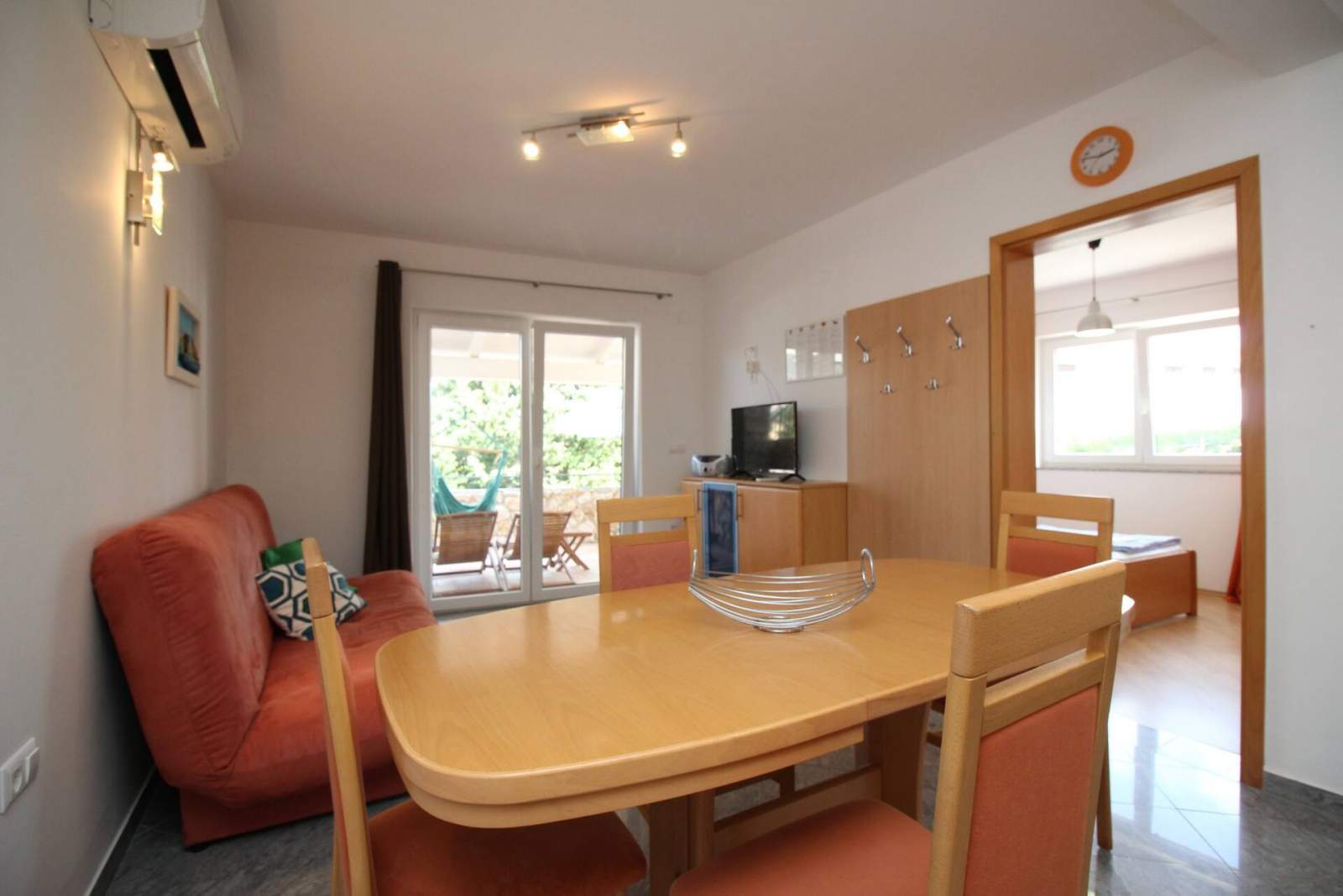 Das Apartment ist mit Klimaanlage, SAT-TV und kostenlosem WLAN ausgestattet.