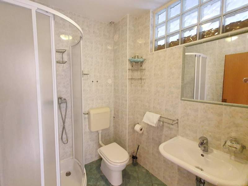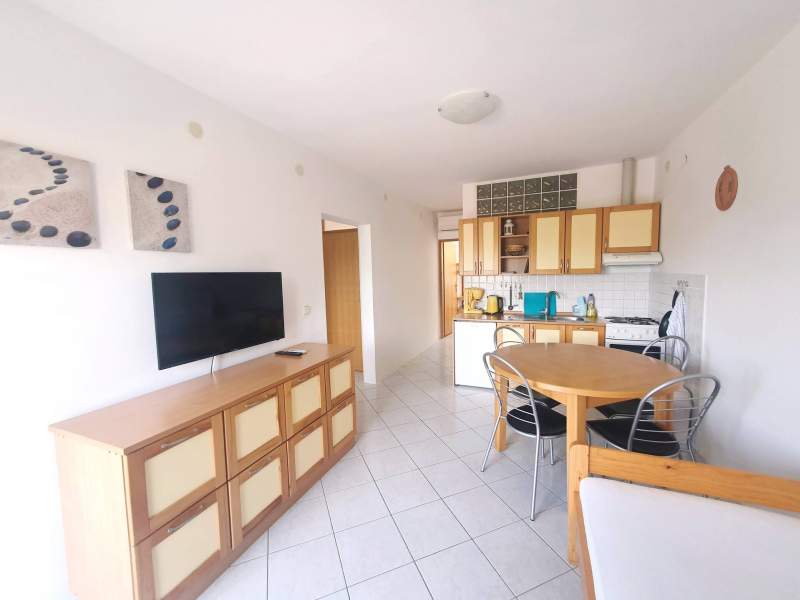 Es hat 2 Schlafzimmer (eines mit einem Doppelbett und weiteres mit zwei Einzelbetten), eine voll ausgestattete Küche mit Wohnzimmer (zusätzliches Bett für 1 Person), ein Badezimmer (Dusche, WC) und einen Balkon (7 m2).