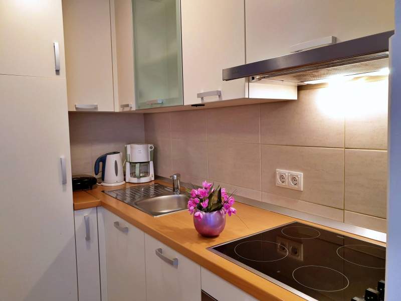 Vlasnik je ljubazan, bio je tu kolačić dobrodošlice. Pekara i restoran su udaljeni 2 minute hoda. Igralište i luka su udaljeni 4 minute hoda. Mala šljunčana plaža 5-10 minuta hoda. Napisali su potpuno opremljenu kuhinju, ali ne i mikrovalnu pećnicu.