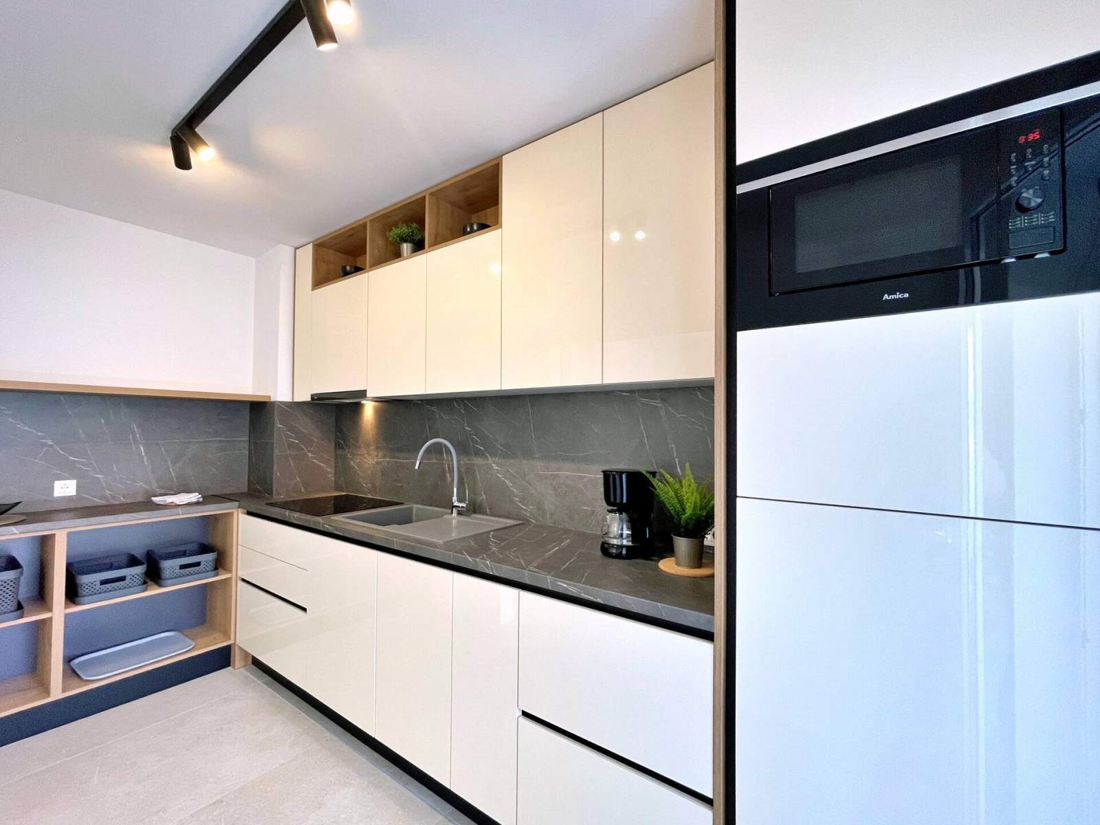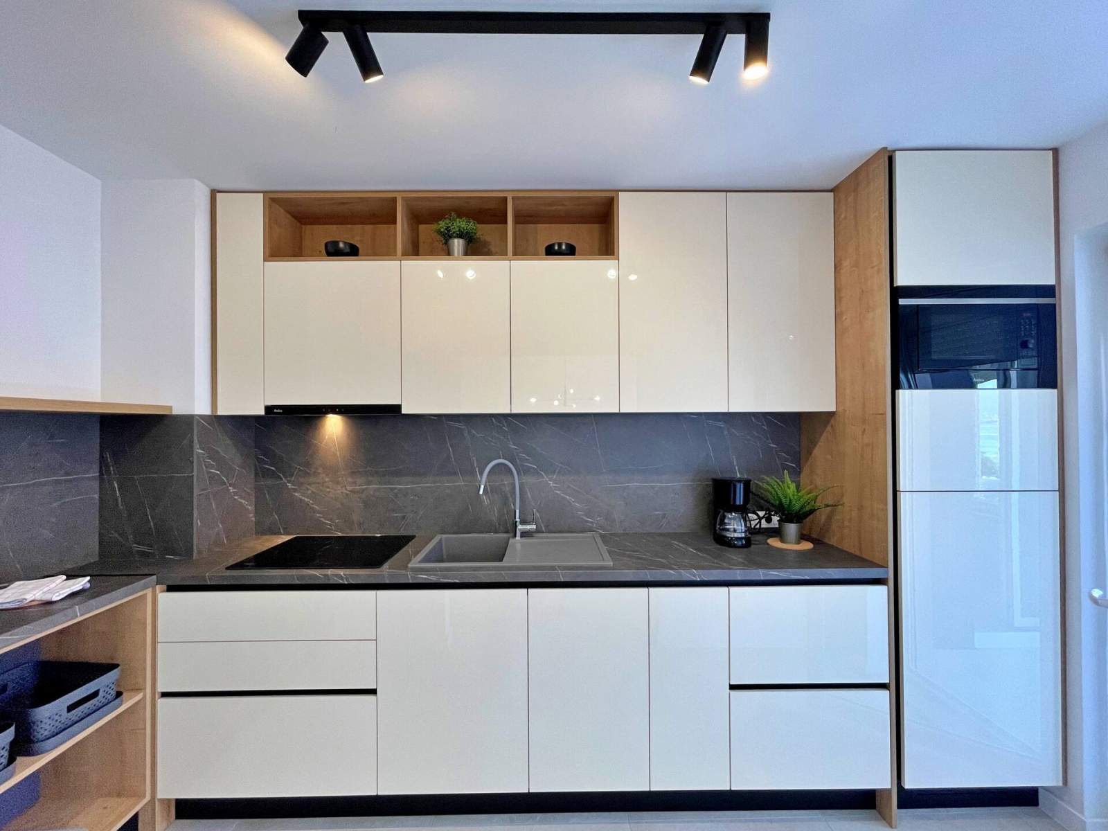 Dieses luxuriöse, moderne Apartment direkt am Meer befindet sich in einem ruhigen Apartmentkomplex nur 30 Meter vom Meer entfernt, umgeben von Natur, einsamen Buchten, Kieselstränden und Wanderwegen. Es bietet einen gemeinschaftlichen Salzwasserpool (36 m2), der von Mai bis Oktober geöffnet ist und dessen Temperaturen normalerweise 20-26 °C erreichen. Das Apartment befindet sich im 2. Stock und verfügt über zwei Schlafzimmer mit jeweils einem Doppelbett, eine moderne Küche mit Induktionskochfeld, Kühl- und Gefrierschrank, Wasserkocher, Kaffeemaschine, Toaster, Mikrowelle und Geschirrspüler. Das Badezimmer verfügt über eine Dusche und eine Toilette. Der Essbereich und das Wohnzimmer bieten einen gemütlichen Raum mit einem Sofa und einem Smart-TV, während im gesamten Gebäude kostenloses WLAN verfügbar ist.