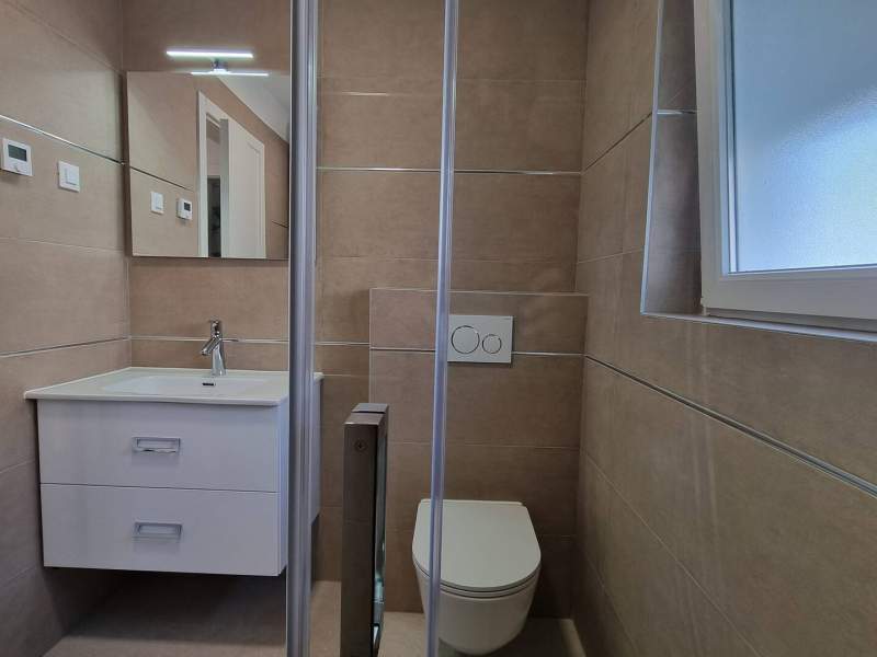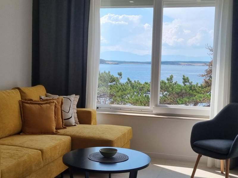 Dieses luxuriöse und moderne Apartment befindet sich in einem ruhigen Apartmentkomplex nur 30 Meter vom Meer entfernt, umgeben von Natur, vielen Buchten, Kieselstränden und Wanderwegen. Es bietet einen gemeinschaftlichen Salzwasserpool (36 m2), der von Mai bis Oktober geöffnet ist und dessen Temperaturen normalerweise 20-26 °C erreichen. Das Apartment befindet sich im 1. Stock und verfügt über ein Schlafzimmer mit einem Doppelbett, eine moderne Küche mit Induktionskochfeld, Kühl- und Gefrierschrank, Wasserkocher, Kaffeemaschine, Toaster, Mikrowelle und Geschirrspüler. Das Badezimmer verfügt über eine Dusche und eine Toilette. Der Essbereich und das Wohnzimmer bieten einen gemütlichen Raum mit einem Sofa und einem Smart-TV, während kostenloses WLAN im gesamten Gebäude verfügbar ist.