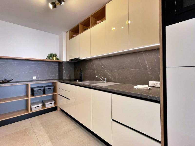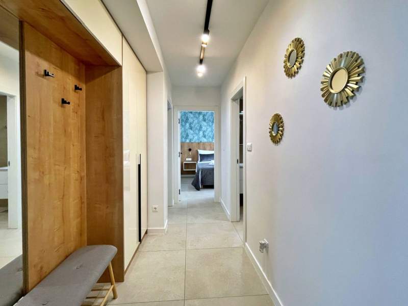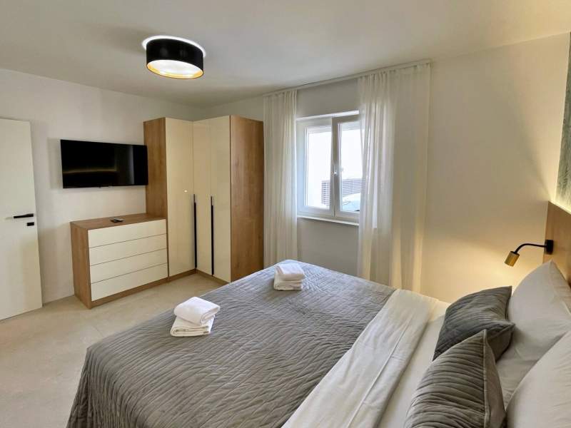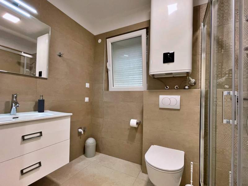 Dieses luxuriöse, moderne Apartment direkt am Meer befindet sich in einem ruhigen Apartmentkomplex nur 30 Meter vom Meer entfernt, umgeben von Natur, einsamen Buchten, Kieselstränden und Wanderwegen. Es bietet einen gemeinschaftlichen Salzwasserpool (36 m2), der von Mai bis Oktober geöffnet ist und dessen Temperaturen normalerweise 20-26 °C erreichen. Das Apartment befindet sich im 1. Stock und verfügt über zwei Schlafzimmer mit jeweils einem Doppelbett, eine moderne Küche mit Induktionskochfeld, Kühl- und Gefrierschrank, Wasserkocher, Kaffeemaschine, Toaster, Mikrowelle und Geschirrspüler. Das Badezimmer verfügt über eine Dusche und eine Toilette. Der Essbereich und das Wohnzimmer bieten einen gemütlichen Raum mit einem Sofa und einem Smart-TV, während im gesamten Gebäude kostenloses WLAN verfügbar ist.