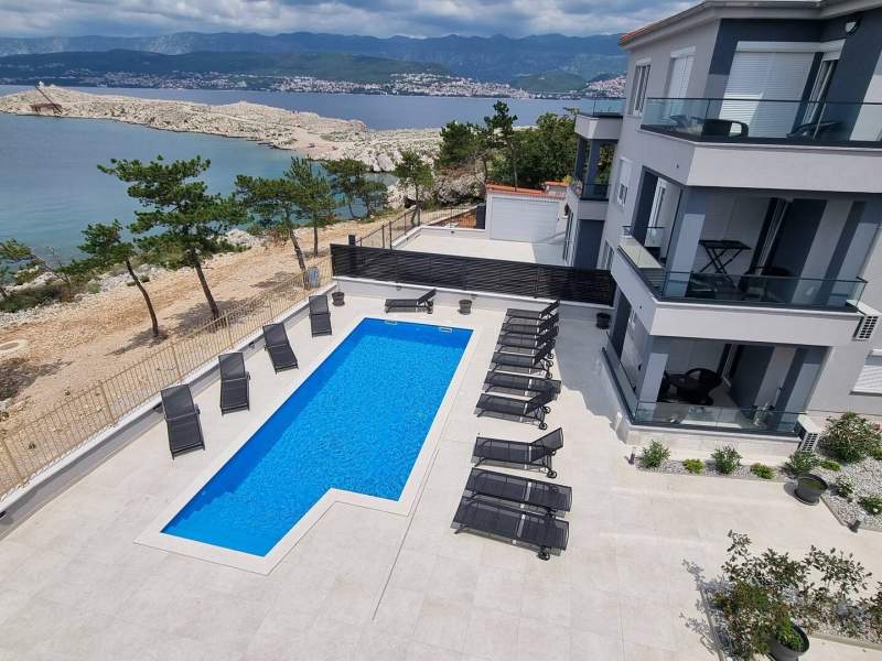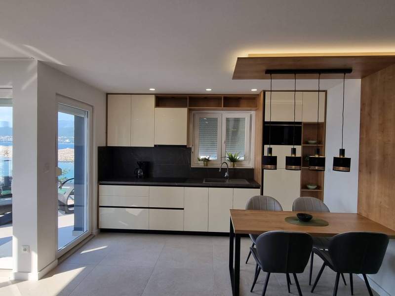 Dieses luxuriöse und moderne Apartment befindet sich in einem ruhigen Apartmentkomplex nur 30 Meter vom Meer entfernt, umgeben von Natur, vielen Buchten, Kieselstränden und Wanderwegen. Es bietet einen gemeinschaftlichen Salzwasserpool (36 m2), der von Mai bis Oktober geöffnet ist und dessen Temperaturen normalerweise 20-26 °C erreichen. Das Apartment befindet sich im 2. Stock und verfügt über ein Schlafzimmer mit einem Doppelbett, eine moderne Küche mit Induktionskochfeld, Kühl- und Gefrierschrank, Wasserkocher, Kaffeemaschine, Toaster, Mikrowelle und Geschirrspüler. Das Badezimmer verfügt über eine Dusche und eine Toilette. Der Essbereich und das Wohnzimmer bieten einen gemütlichen Raum mit einem Sofa und einem Smart-TV, während kostenloses WLAN im gesamten Gebäude verfügbar ist.