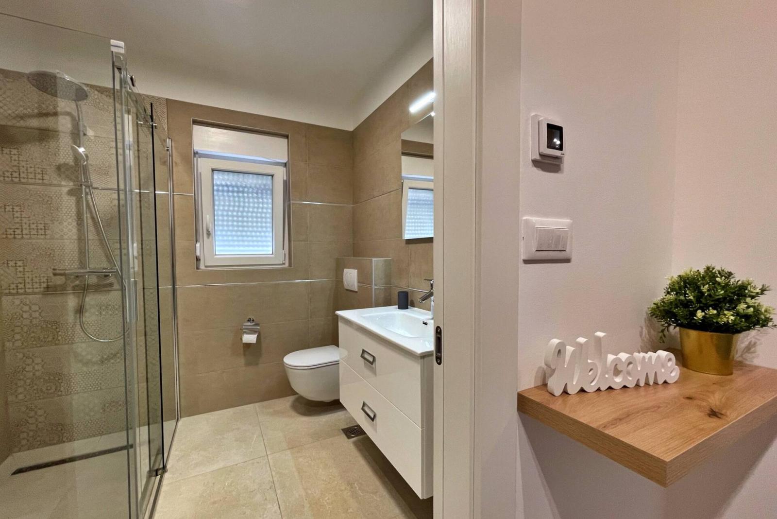 Lokacija je odlična, plaža je odmah ispred kuće, a druga plaža je s druge strane, udaljena oko 5 minuta hoda. Do grada s trgovinama i restoranima može se doći pješice za oko 15 minuta. Apartmanski kompleks je vrlo nov i dobro održavan.