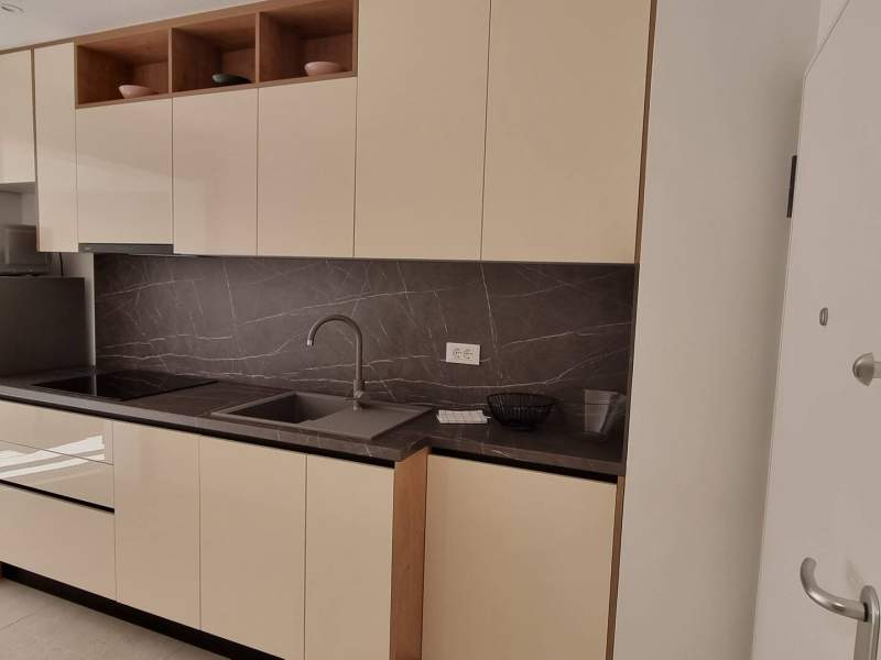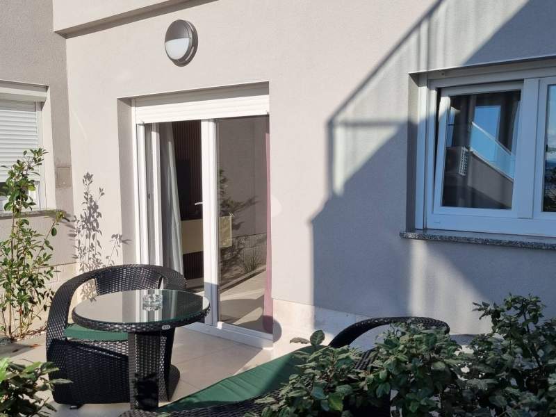 Dieses luxuriöse und moderne Apartment befindet sich in einem ruhigen Apartmentkomplex nur 30 Meter vom Meer entfernt, umgeben von Natur, vielen Buchten, Kieselstränden und Wanderwegen. Es bietet einen gemeinschaftlichen Salzwasserpool (36 m2), der von Mai bis Oktober geöffnet ist und dessen Temperaturen normalerweise 20-26 °C erreichen. Das Apartment befindet sich im Erdgeschoss und verfügt über ein Schlafzimmer mit einem Doppelbett, eine moderne Küche mit Induktionskochfeld, Kühl- und Gefrierschrank, Wasserkocher, Kaffeemaschine, Toaster, Mikrowelle und Geschirrspüler. Das Badezimmer hat eine Dusche und eine Toilette. Der Essbereich und das Wohnzimmer bieten einen gemütlichen Raum mit einem Sofa und einem Smart-TV, während kostenloses WLAN im gesamten Gebäude verfügbar ist.