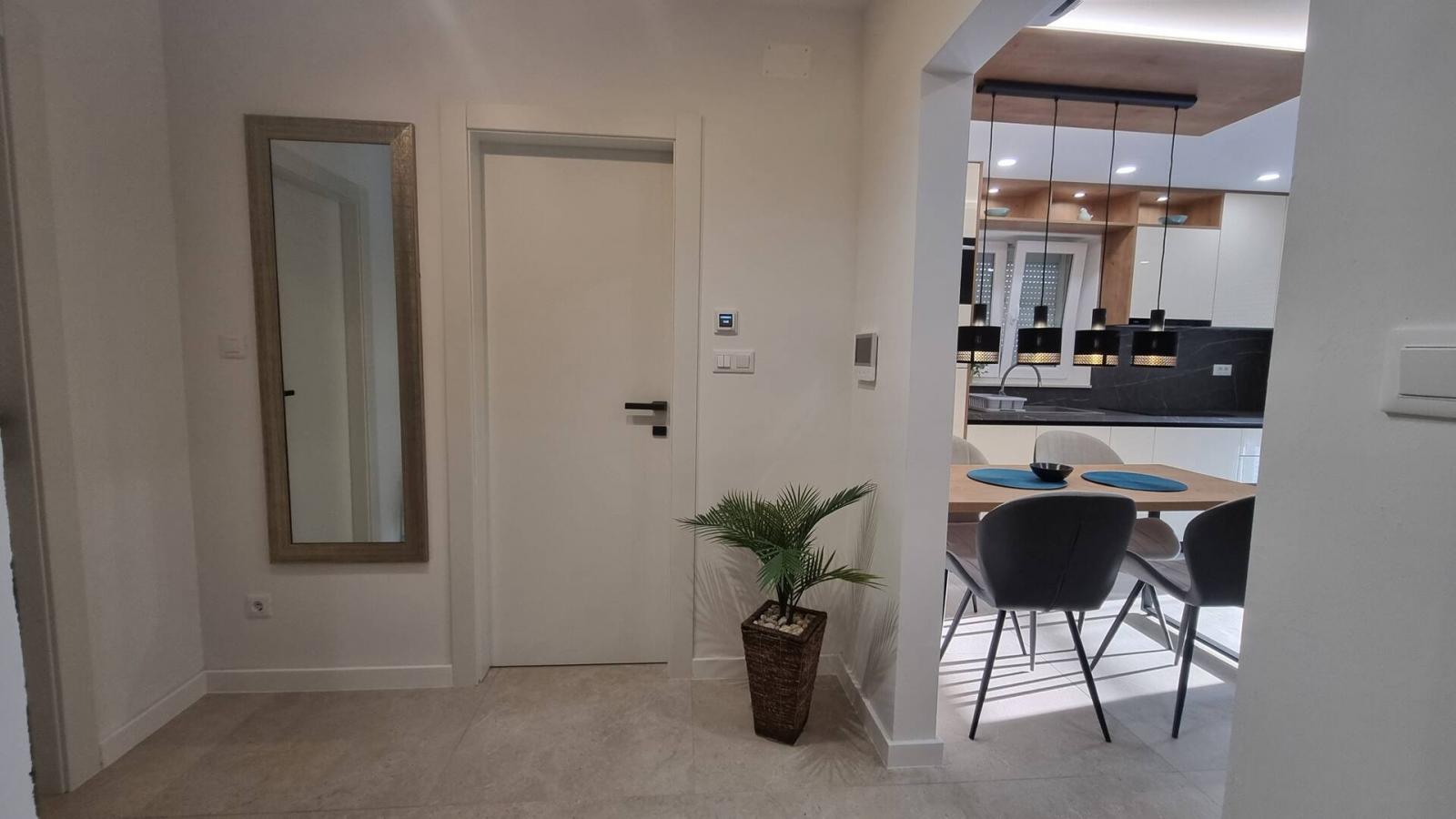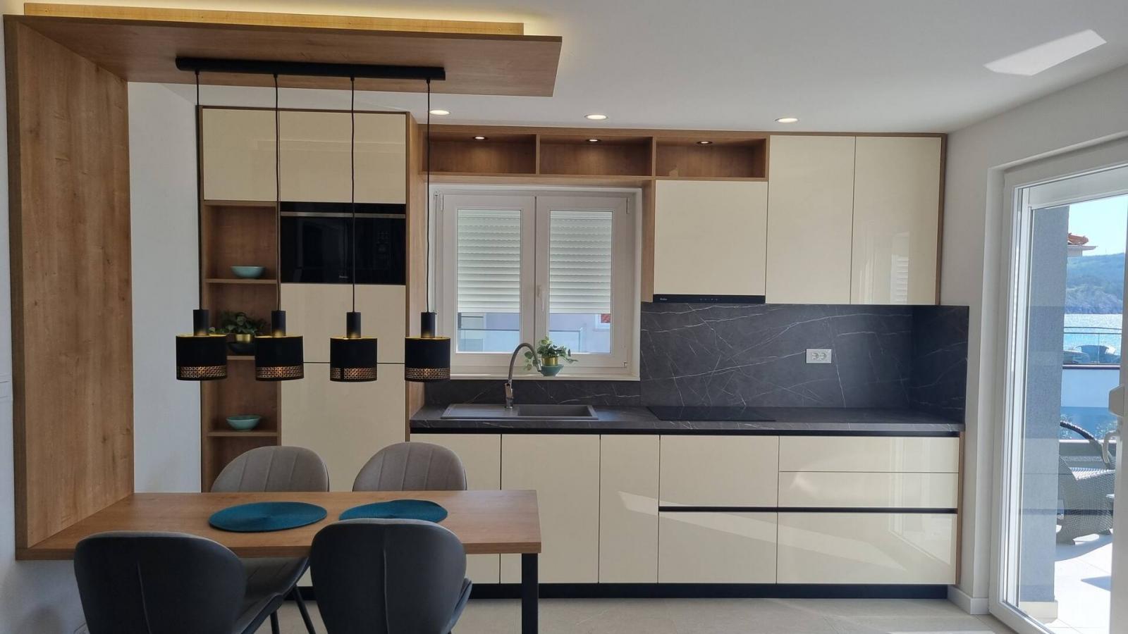 Dieses luxuriöse und moderne Apartment befindet sich in einem ruhigen Apartmentkomplex nur 30 Meter vom Meer entfernt, umgeben von Natur, vielen Buchten, Kieselstränden und Wanderwegen. Es bietet einen gemeinschaftlichen Salzwasserpool (36 m2), der von Mai bis Oktober geöffnet ist und dessen Temperaturen normalerweise 20-26 °C erreichen. Das Apartment befindet sich im 2. Stock und verfügt über ein Schlafzimmer mit einem Doppelbett, eine moderne Küche mit Induktionskochfeld, Kühl- und Gefrierschrank, Wasserkocher, Kaffeemaschine, Toaster, Mikrowelle und Geschirrspüler. Das Badezimmer verfügt über eine Dusche und eine Toilette. Der Essbereich und das Wohnzimmer bieten einen gemütlichen Raum mit einem Sofa und einem Smart-TV, während kostenloses WLAN im gesamten Gebäude verfügbar ist.