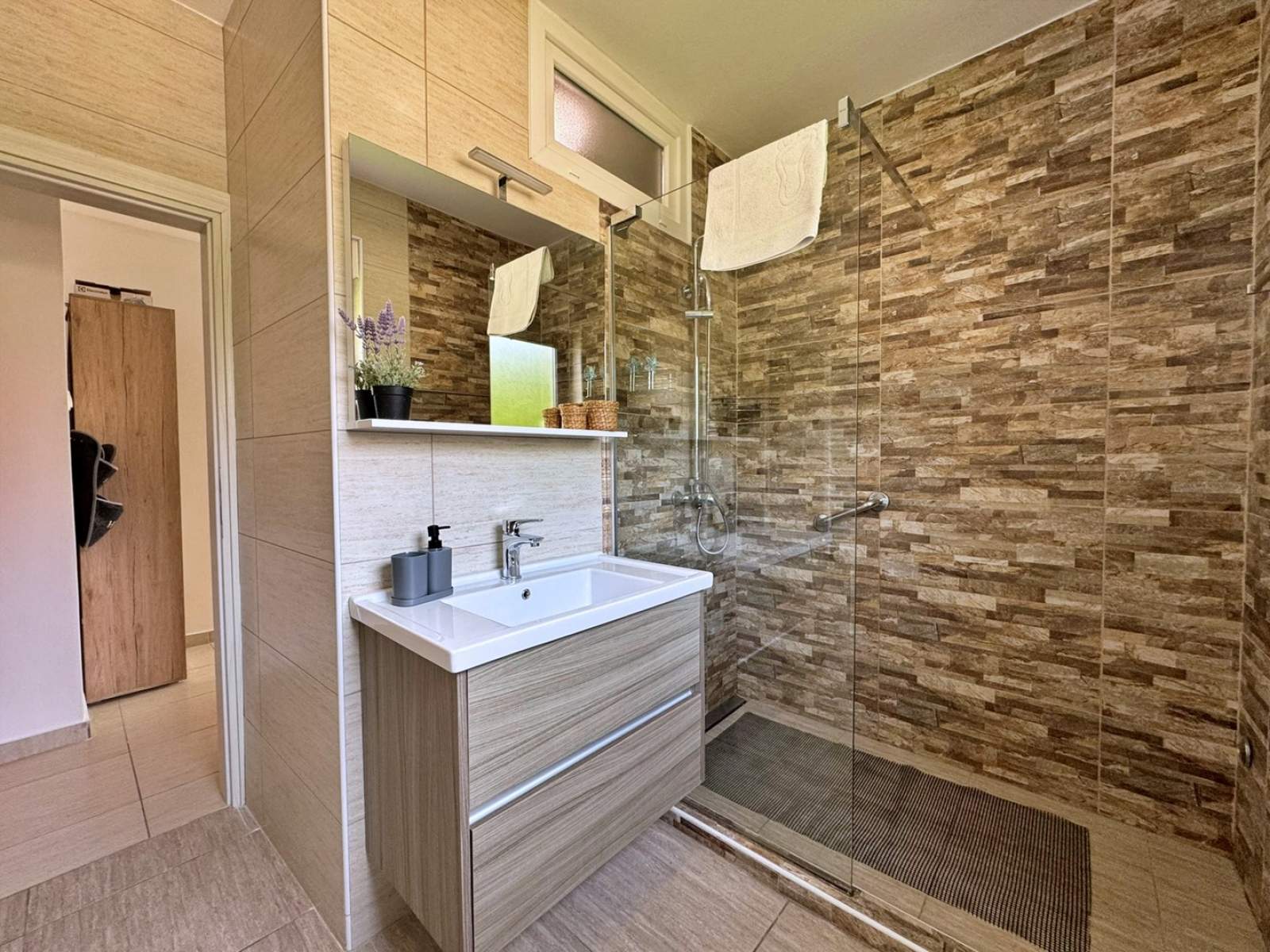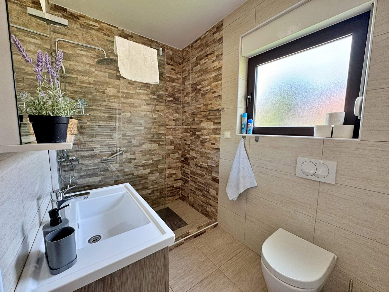 Kuća je bila odlična, svidjelo mi se što je prostrana, odabrala sam je za smještaj 5 osoba i imala je 2 kupaonice što je bio veliki plus. Pogled je bio nevjerojatan i samo 5 minuta od plaže. Uzbrdo je, kao što možete vidjeti na slikama, što pruža prekrasan pogled. Namještaj je bio moderan i praktičan, kuhinja i kupaonice imale su sve što vam je potrebno, a 2 klima uređaja uvelike su pomogla u hlađenju od vanjske vrućine. Domaćica je bila ljubazna i živjela je u kući iza mjesta, tako da je blizu ako vam zatreba. Svakako preporučujem njezin smještaj ako ste 2 obitelji i tražite vrlo lijep dom po povoljnoj cijeni za istraživanje Hrvatske!