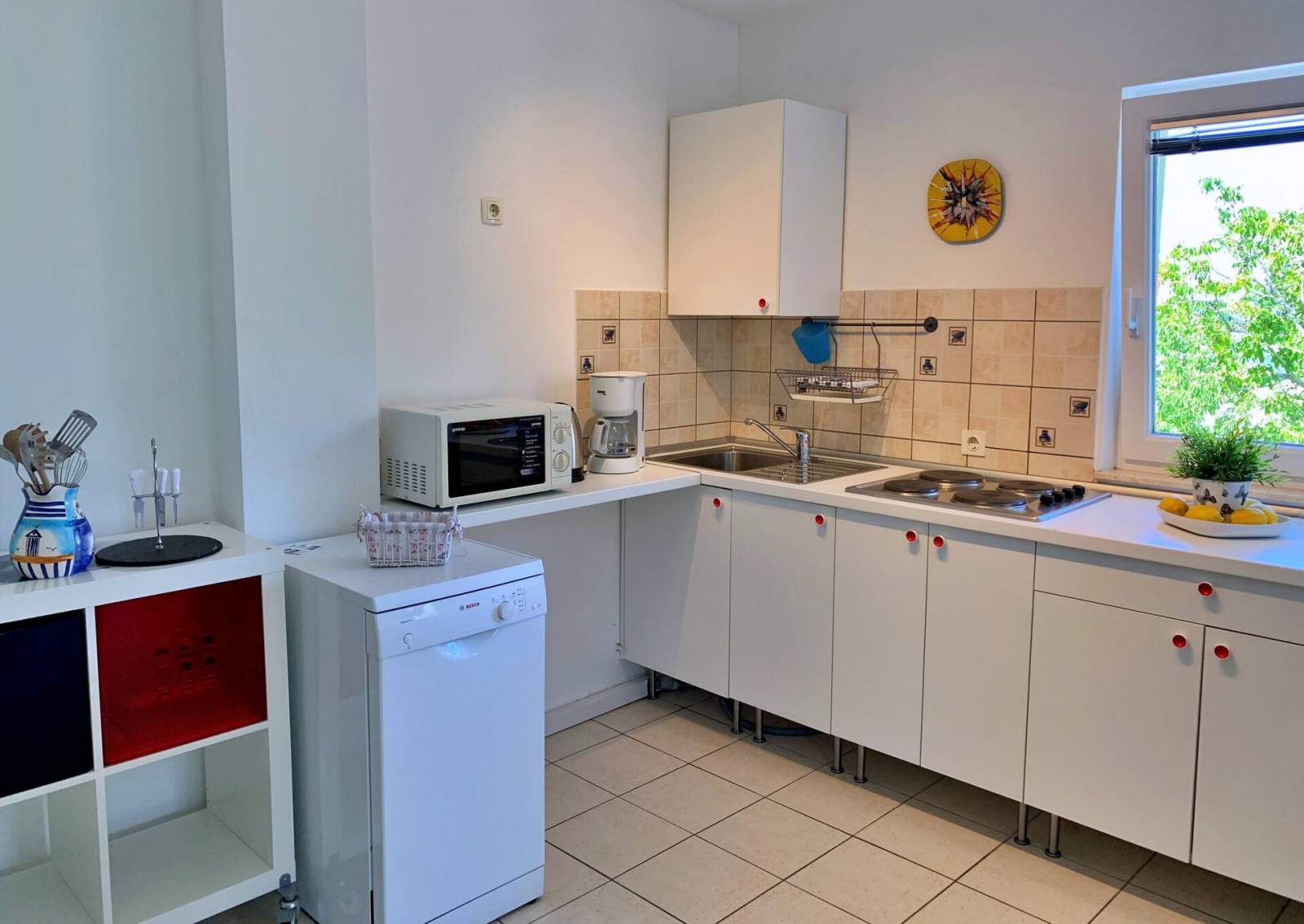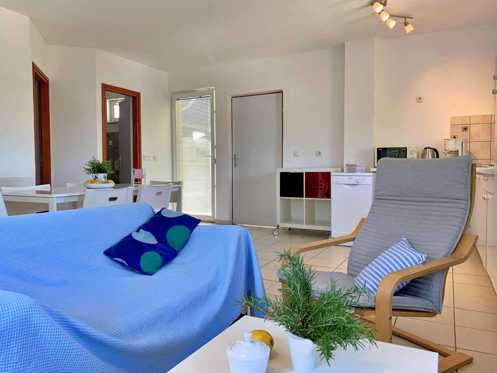 Genießen Sie einen erholsamen Urlaub in diesem einladenden Apartment im ersten Stock, das perfekt für bis zu 4 Gäste ist. Es verfügt über zwei gemütliche Schlafzimmer, jedes mit einem Doppelbett, sowie eine offene Küche, einen Wohn- und Essbereich. Die gut ausgestattete Küche umfasst einen Elektroherd, einen Kühlschrank, einen Gefrierschrank, einen Geschirrspüler, eine Kaffeemaschine, einen Wasserkocher, einen Toaster und eine Mikrowelle – alles, was Sie für einen komfortablen Aufenthalt benötigen.