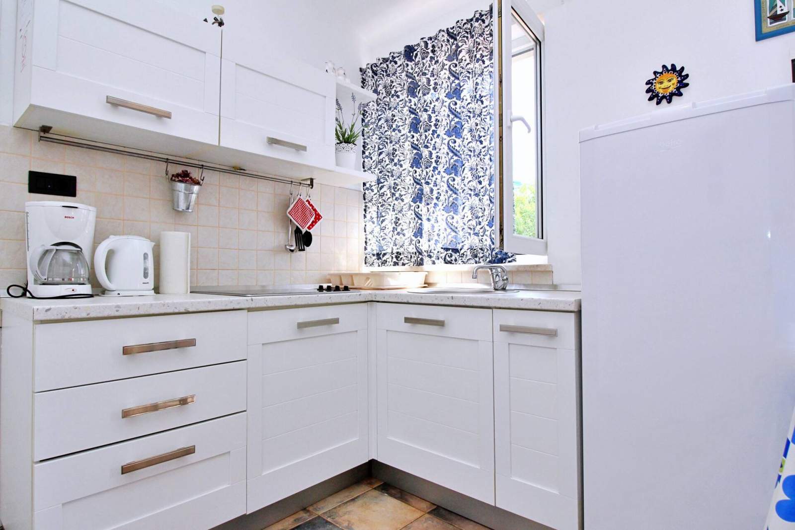 The apartment was nicely furnished. Kitchen equipped, salt, sugar, oil, tea. TV, fridge, air conditioning, wifi, everything worked. We were very satisfied. Close to the sea.