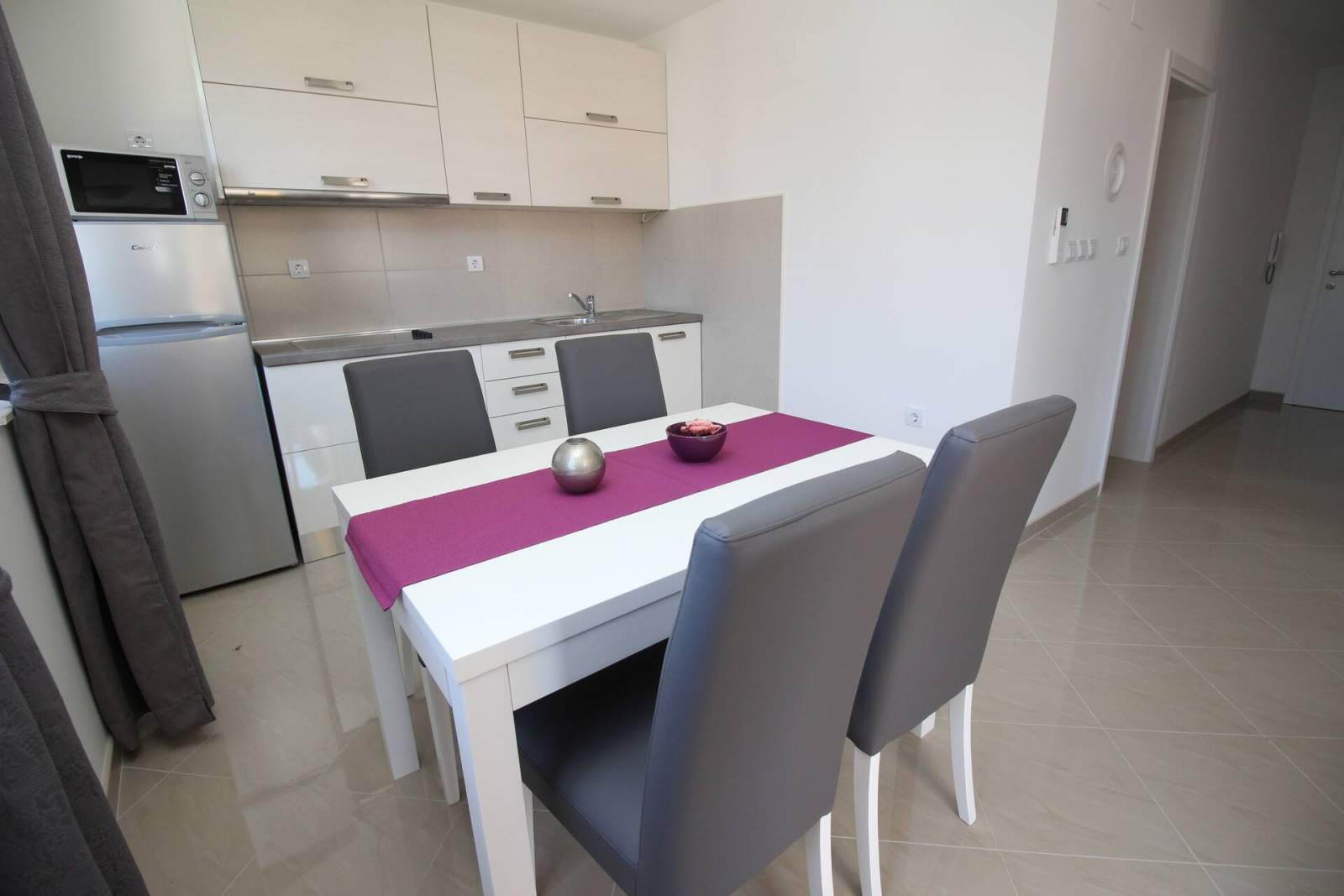 The apartment consists of one bedroom, a bathroom (shower, toilet, hair dryer, washing machine), a bright living area with air conditioning, SAT TV, free Wi-Fi and with fully equipped kitchen. The kitchen includes an electric stove, fridge with a freezer, dishwasher, microwave, coffee maker and kettle. Kitchen utensils are included.