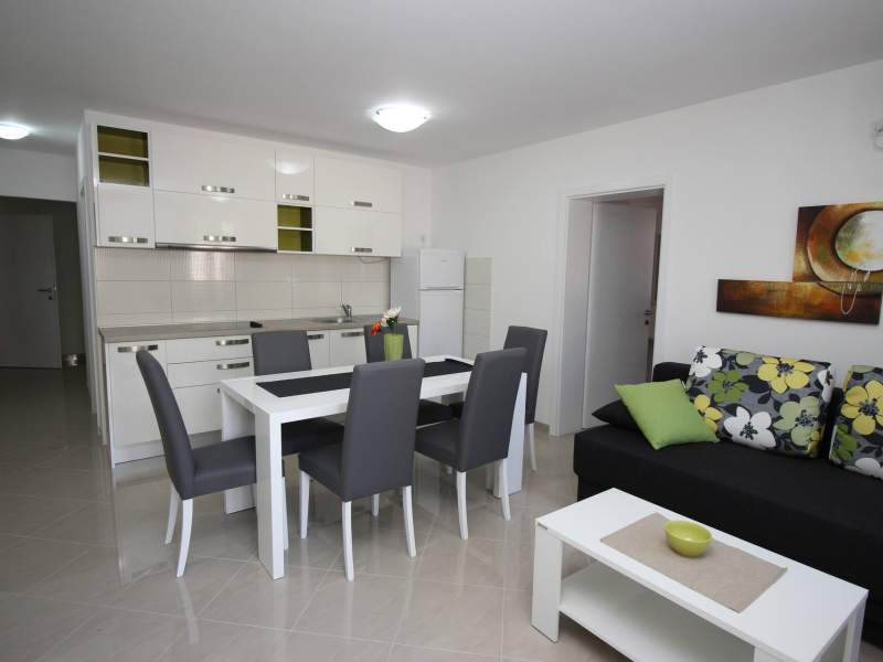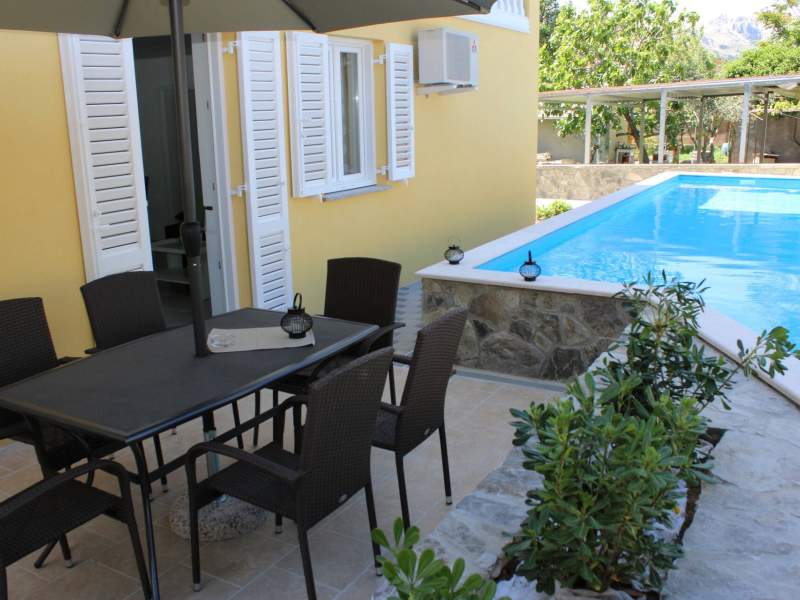 This modern apartment is located in a house with shared pool, only 200 m from the main beach of Baska and 100 m from the city center.
