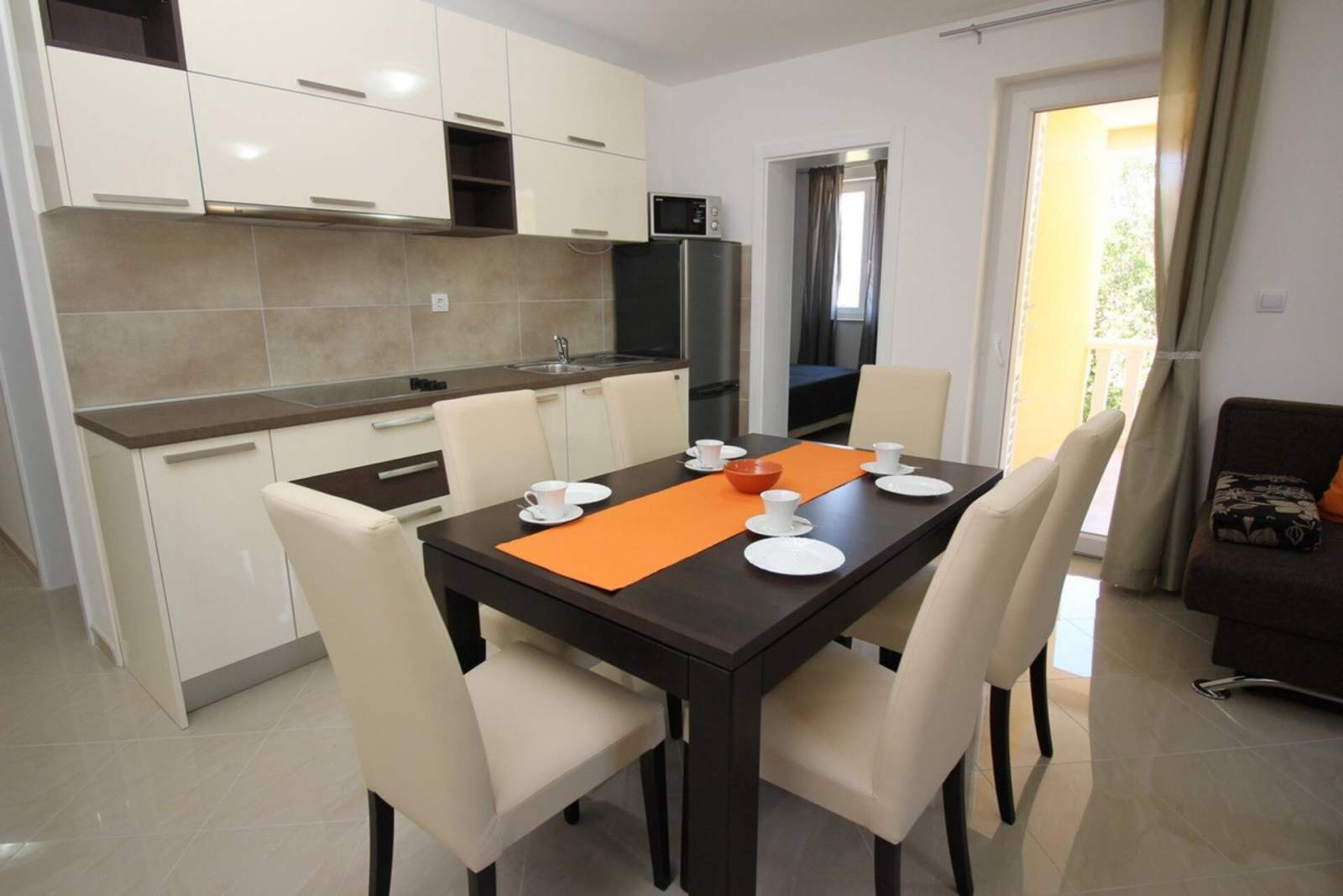 This modern apartment is located in a house with shared pool, only 200 m from the main beach of Baska and 100 m from the city center.