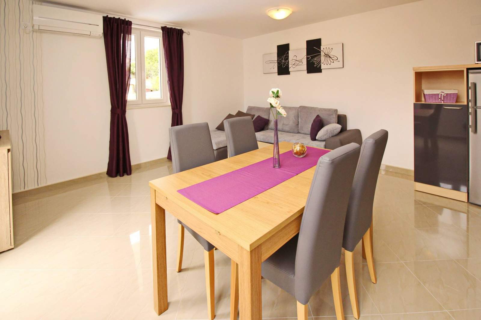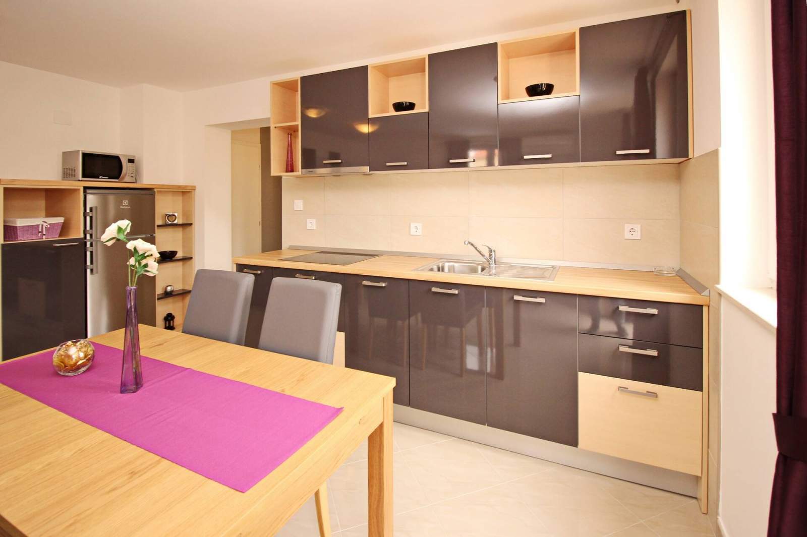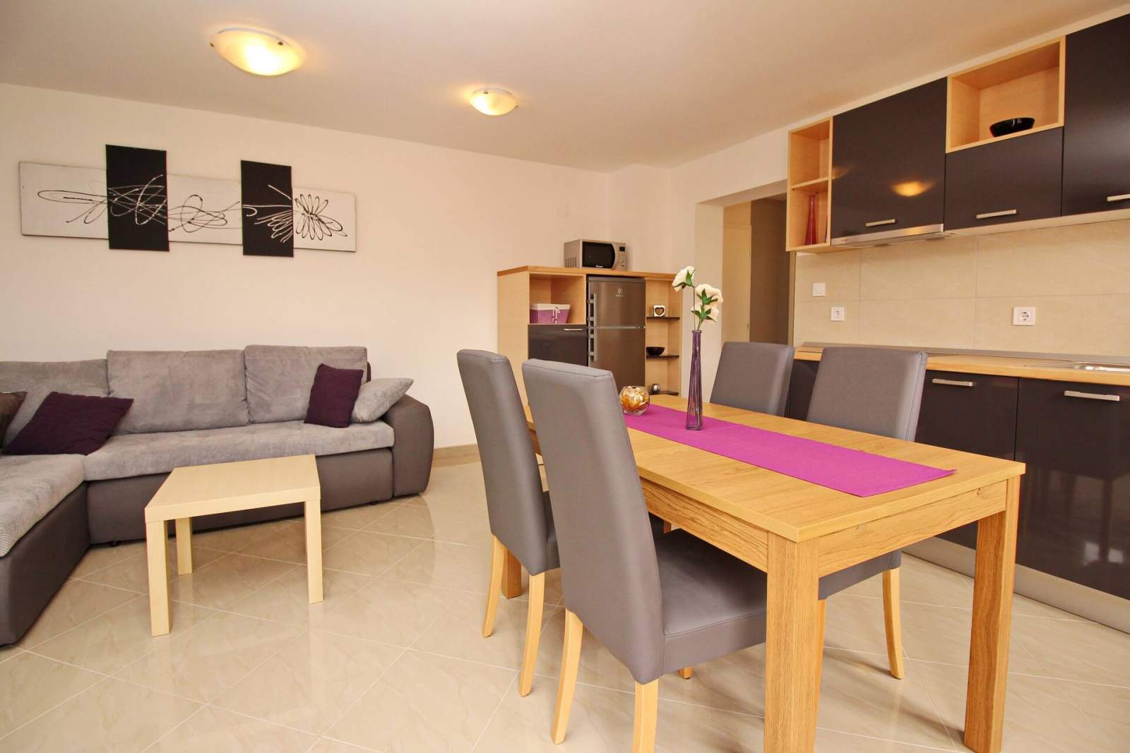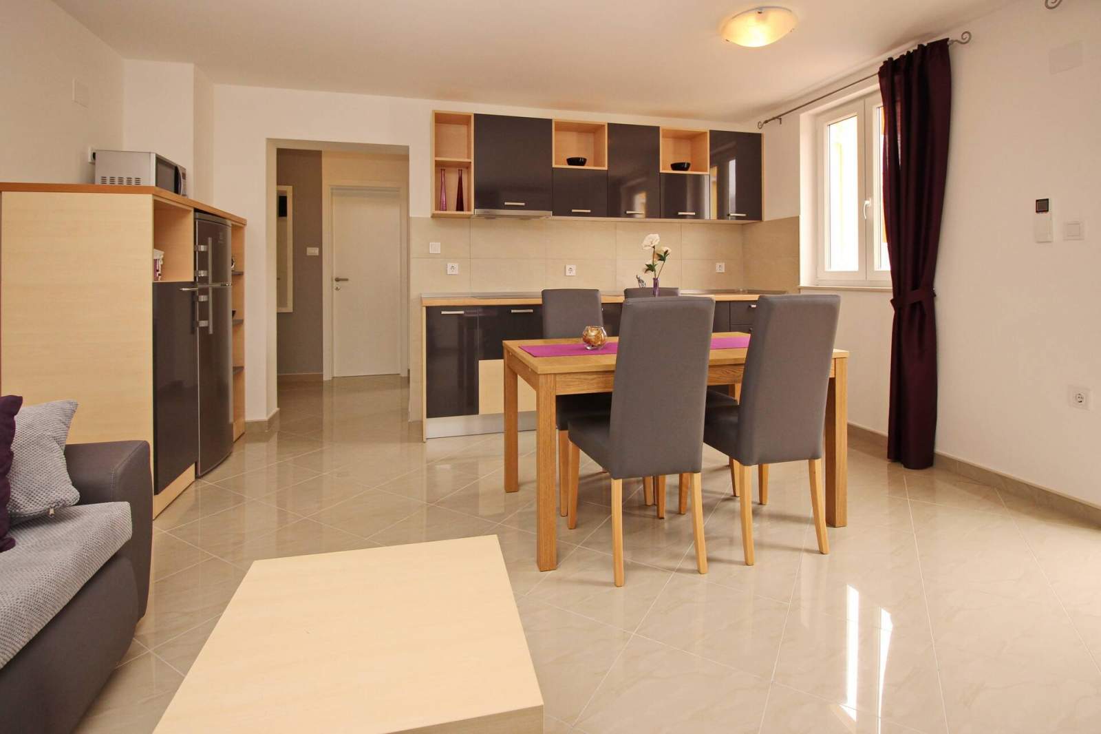 This modern, spacious apartment is located in a house with shared pool, about 300 m from the main beach of Baska and 200 m from the city center.