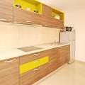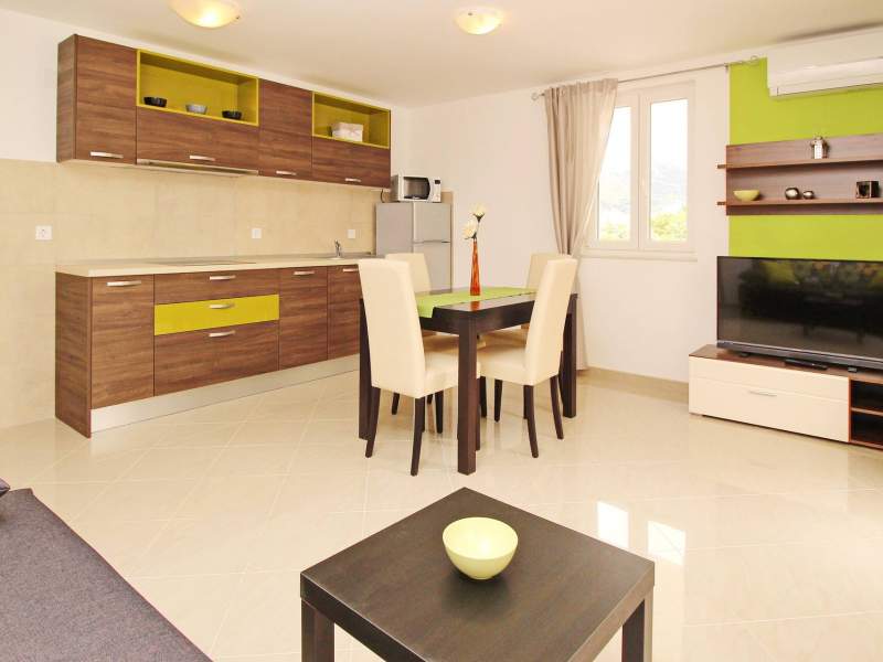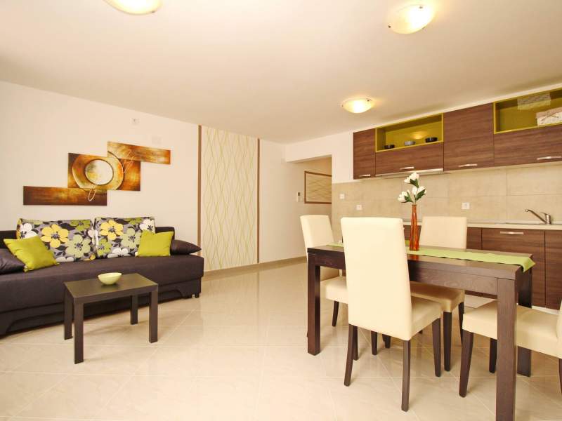 The apartment consists of one bedroom, a bathroom (shower, toilet, hair dryer, washing machine), and a bright living room with additional bed on the couch for 2 persons, air conditioning, SAT TV, free Wi-Fi and a fully equipped kitchen. The kitchen includes an electric stove, fridge with a freezer, dishwasher, microwave, coffee maker and kettle. Kitchen utensils are included.
