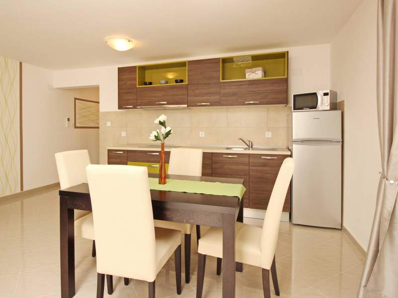 This modern, spacious apartment is located in a house with shared pool, about 300 m from the main beach of Baska and 200 m from the city center.