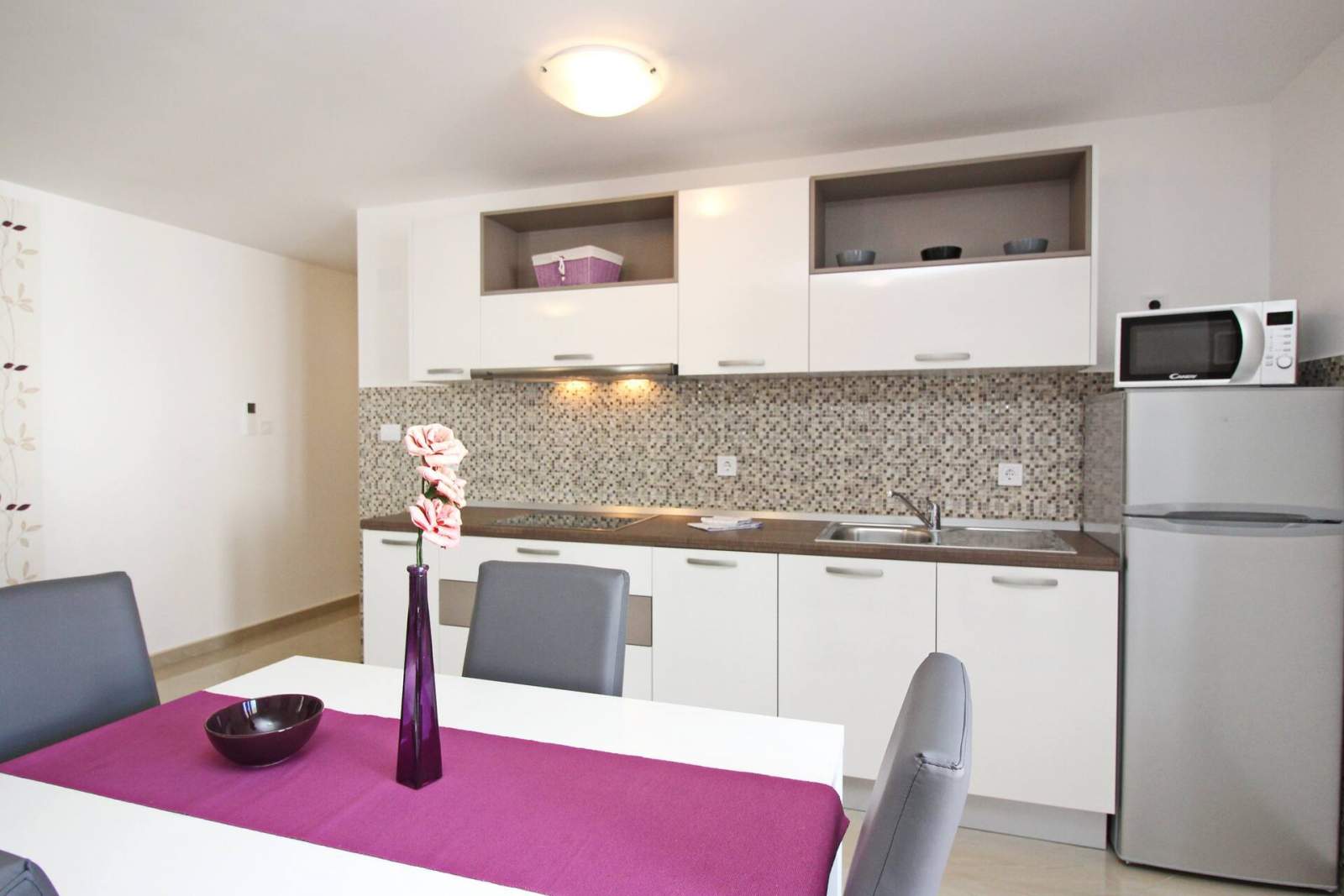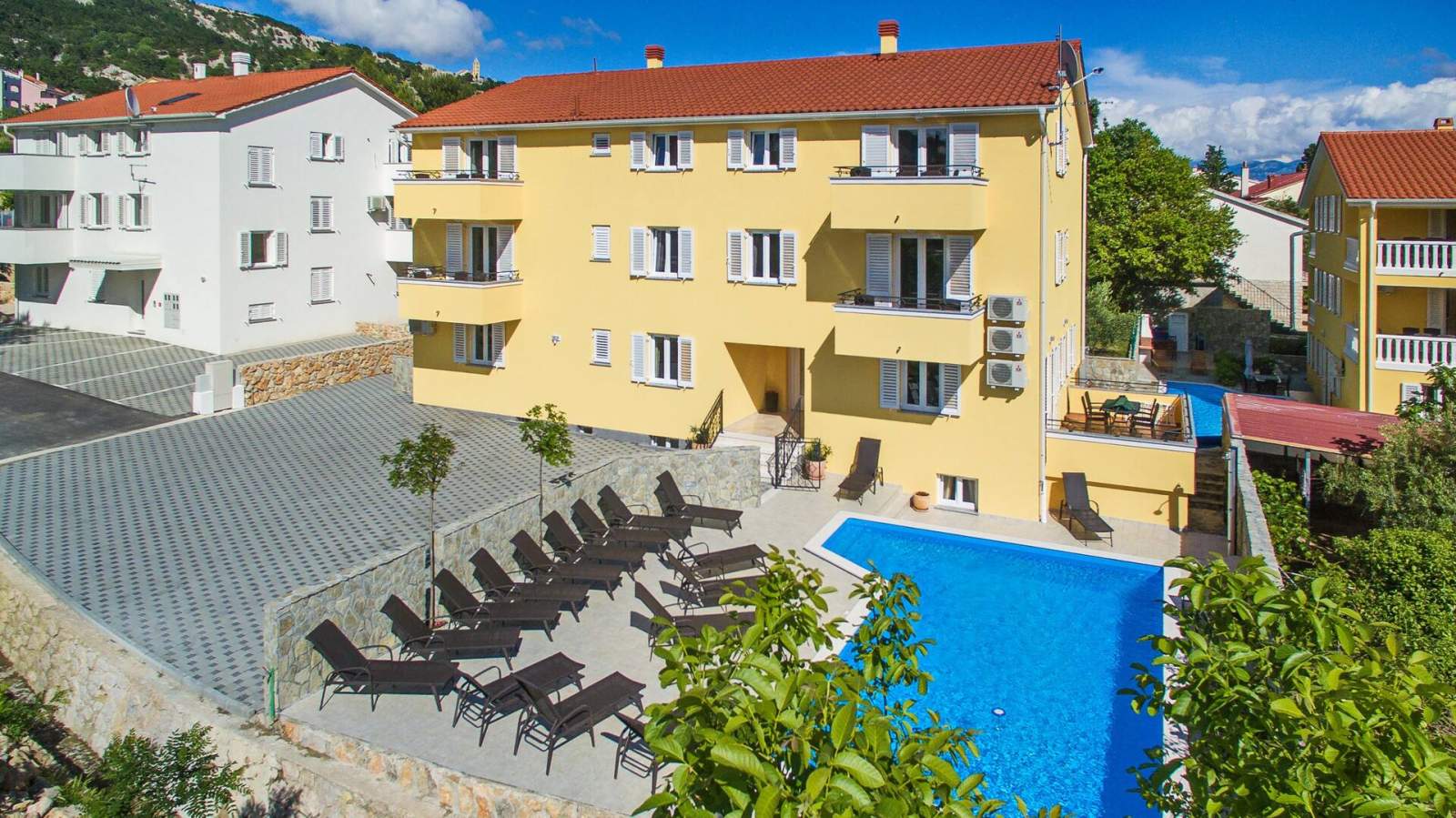 This modern, spacious apartment is located in a house with shared pool, about 300 m from the main beach of Baska and 200 m from the city center.