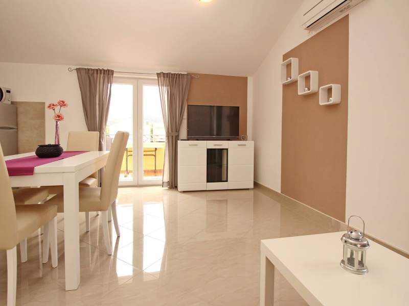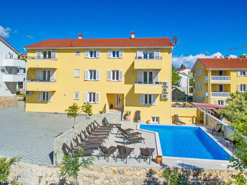 This modern, spacious apartment is located in a house with shared pool, about 300 m from the main beach of Baska and 200 m from the city center.