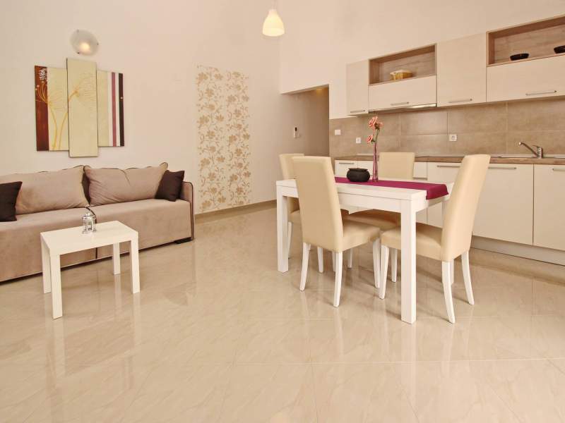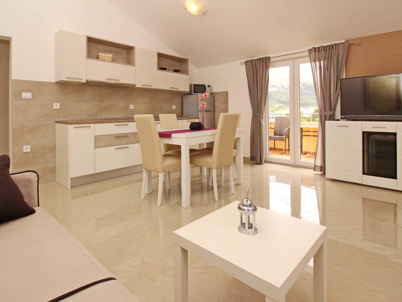 The apartment consists of one bedroom, a bathroom (shower, toilet, hair dryer, washing machine), and a bright living room with additional bed on the couch for 2 persons, air conditioning, SAT TV, free Wi-Fi and a fully equipped kitchen. The kitchen includes an electric stove, fridge with a freezer, dishwasher, microwave, coffee maker and kettle. Kitchen utensils are included.