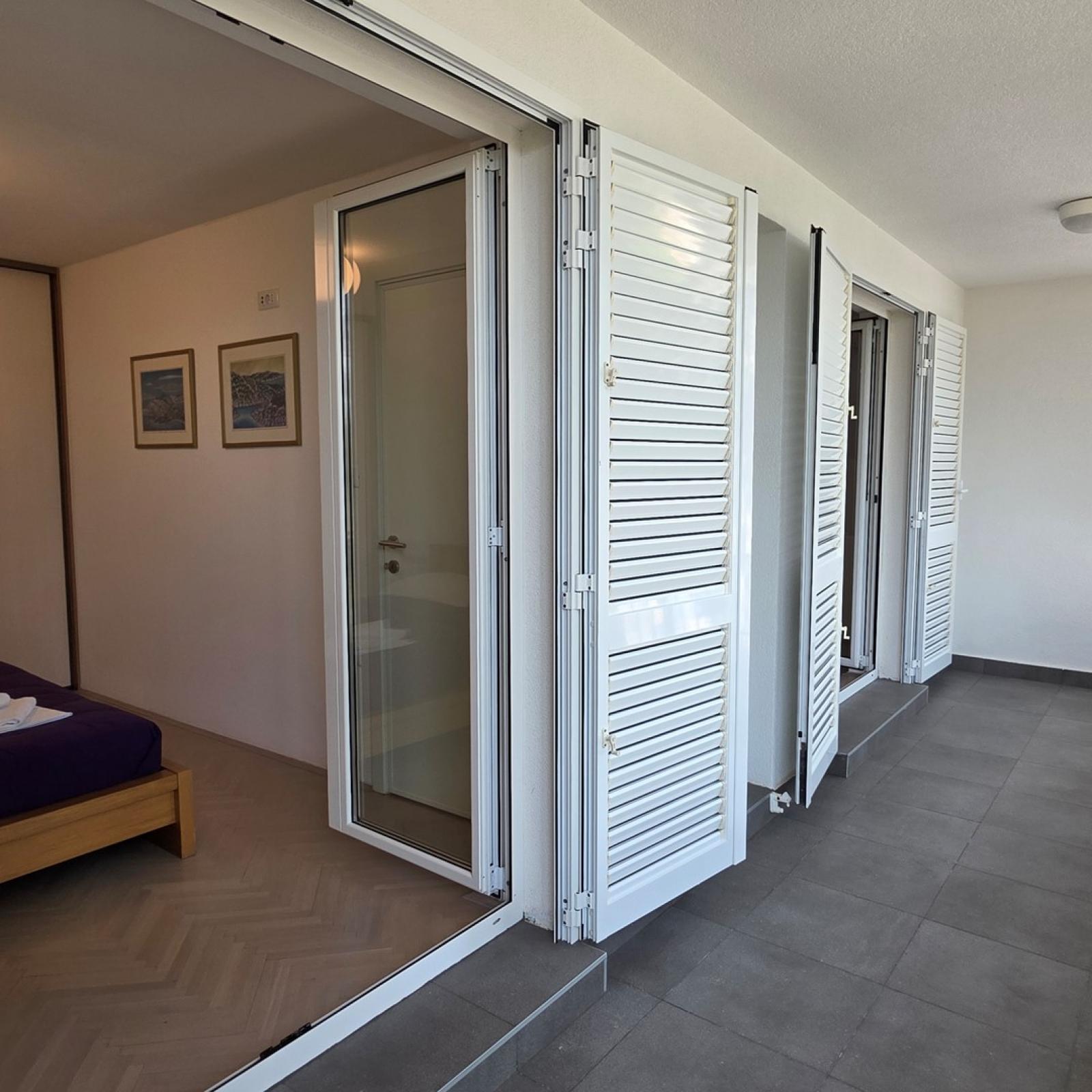 Very good location, two terraces, outdoor shower in addition to the bathroom, air conditioning throughout, enough space even for 5 people. Everything necessary is available in the apartment, the agency is always approachable and very friendly, and bed linen and towels are changed after one week. Wooden staircase to the upper floor with narrow steps.