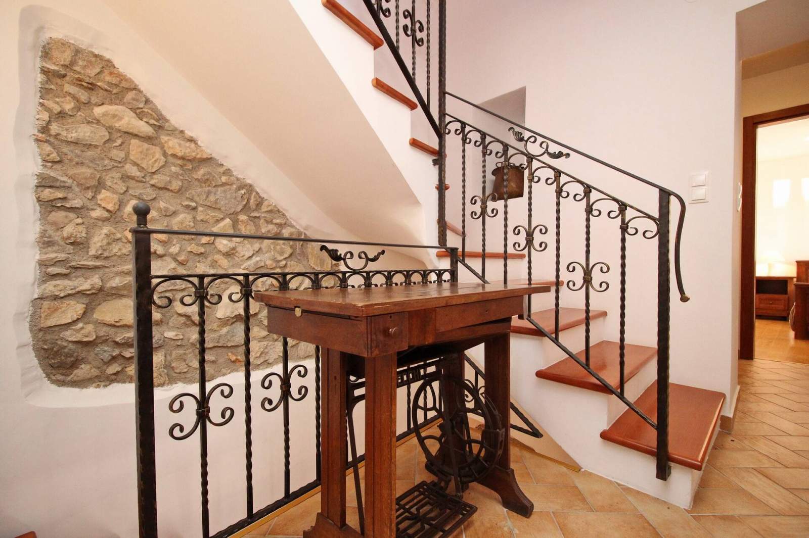 This spacious, rustically decorated house offers 5 bedrooms (4 double and 1 single), 3 bathrooms (2 with showers and 1 with bathtub), living room, dining room and a fully equipped kitchen.