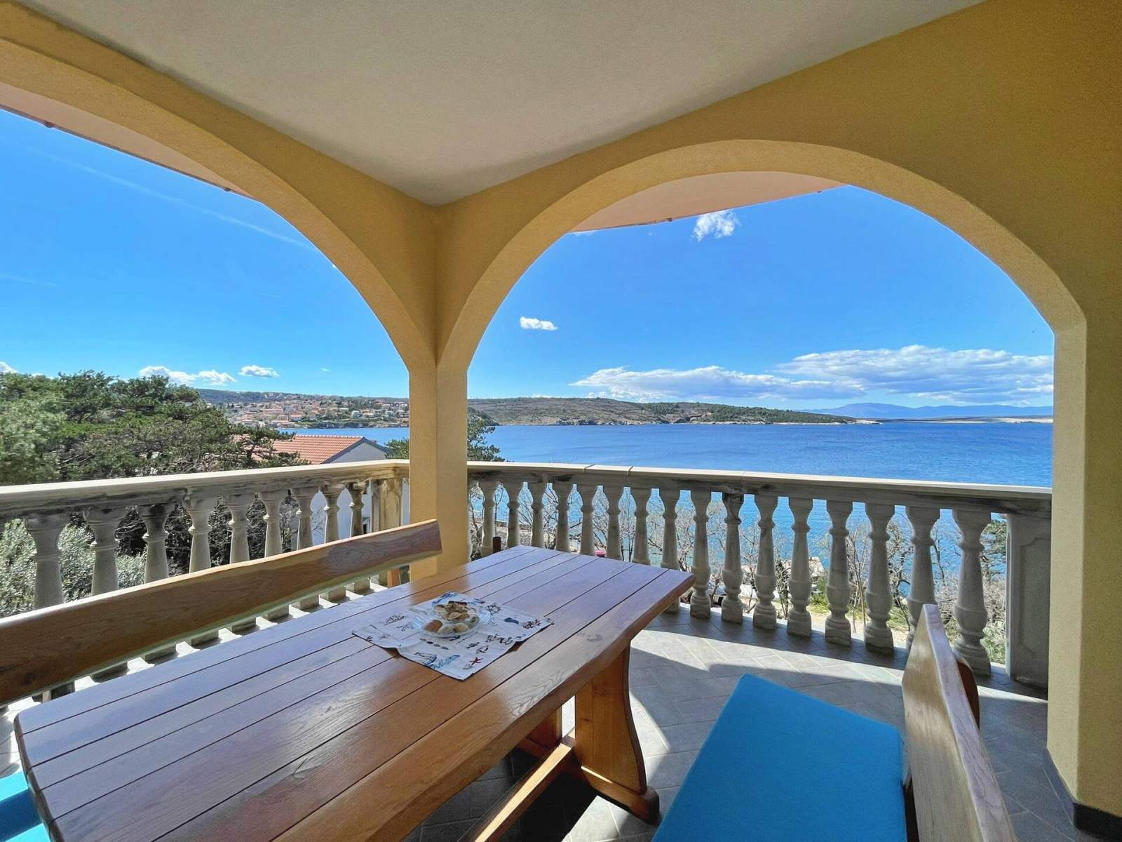 Great location, beautiful sea view from the deck with an evening view of the sunset. Nice, wide beach a few dozen meters away. A few good restaurants nearby. The apartment is fully as described, the kitchen is fully equipped, but instead of an oven, a microwave. A very friendly host. Very quiet neighborhood. Close to basketball, football, and volleyball court. The apartment is really worth recommending and maybe we will come back there again, we had a great vacation and we were sorry to leave.