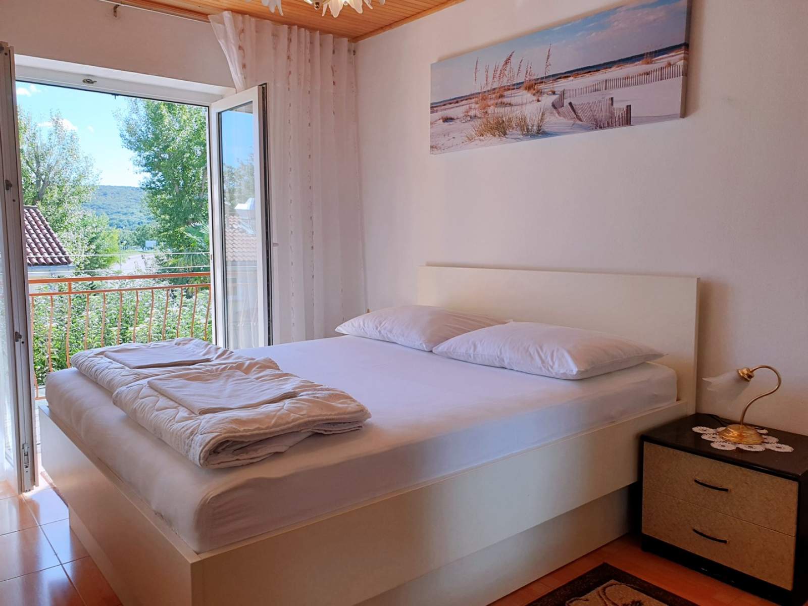 The extremely hospitable owner, Mrs. Nevenka, showed us the apartment and gave us all the information. We found the location to be extremely convenient, both to the beach, which is suitable for children (200 m), and to the beach with deeper water, where swimming is more pleasant (200 m). The shop for the essentials is also not far away. I liked how they handle and separate waste and I wish this practice were everywhere.