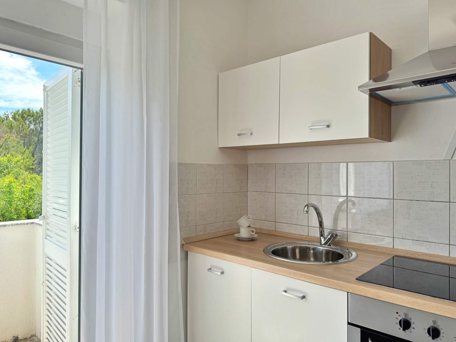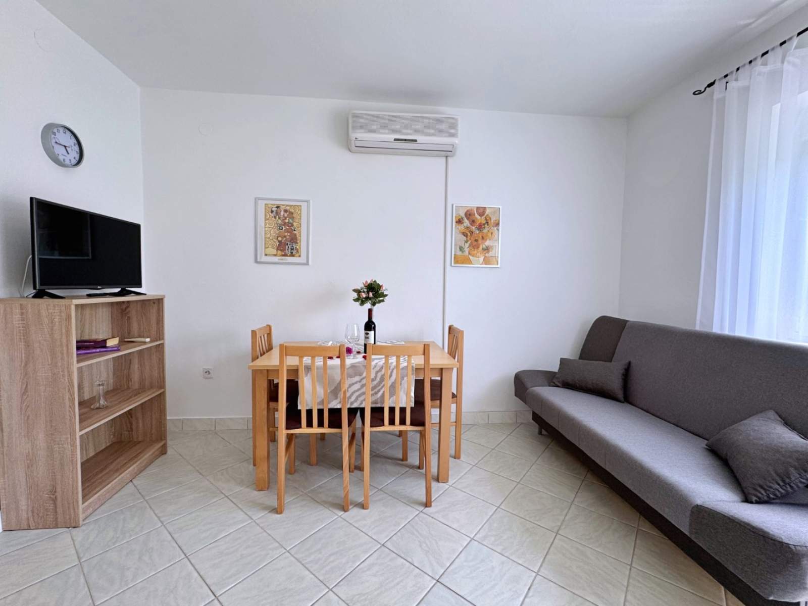 Located just 450 m from the sea and 40 m from a supermarket in a quiet area, this first-floor apartment is perfect for a relaxing stay. It features two bedrooms with queen-size beds, one of which has access to the balcony. The living room and kitchen share an open space equipped with an electric stove, oven, fridge, microwave, toaster, kettle, and coffee machine. The bathroom includes a shower, toilet, bidet, and hairdryer. The balcony (6 m2) with views of greenery is also accessible from the living room. Enjoy amenities like air conditioning, Wi-Fi, and free parking. Guests can also use the shared garden with a BBQ and seating area.