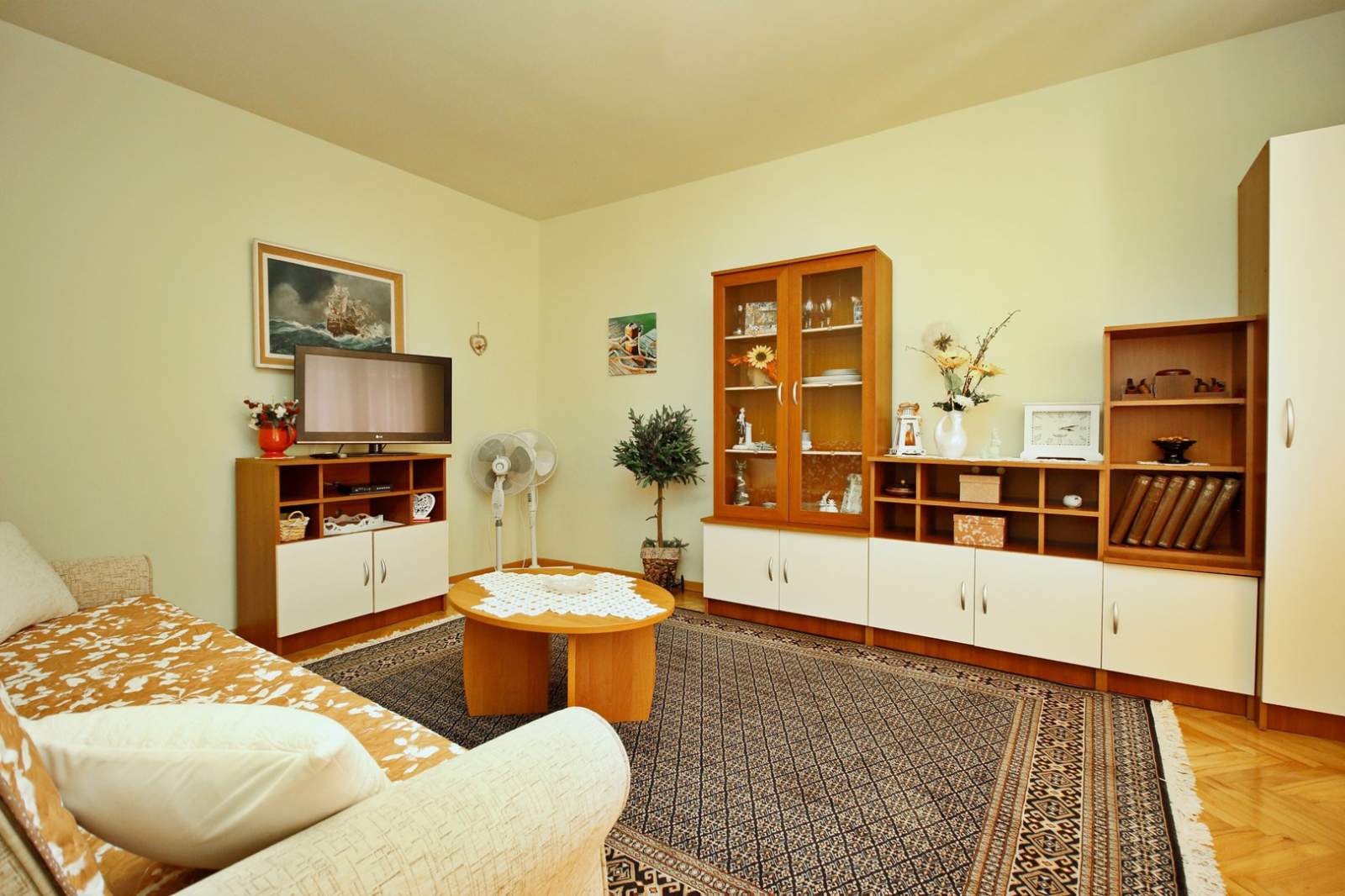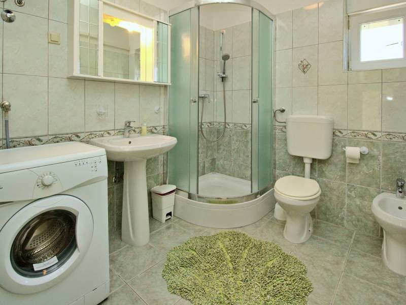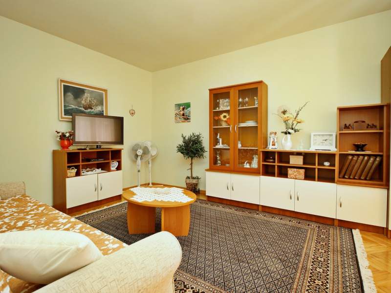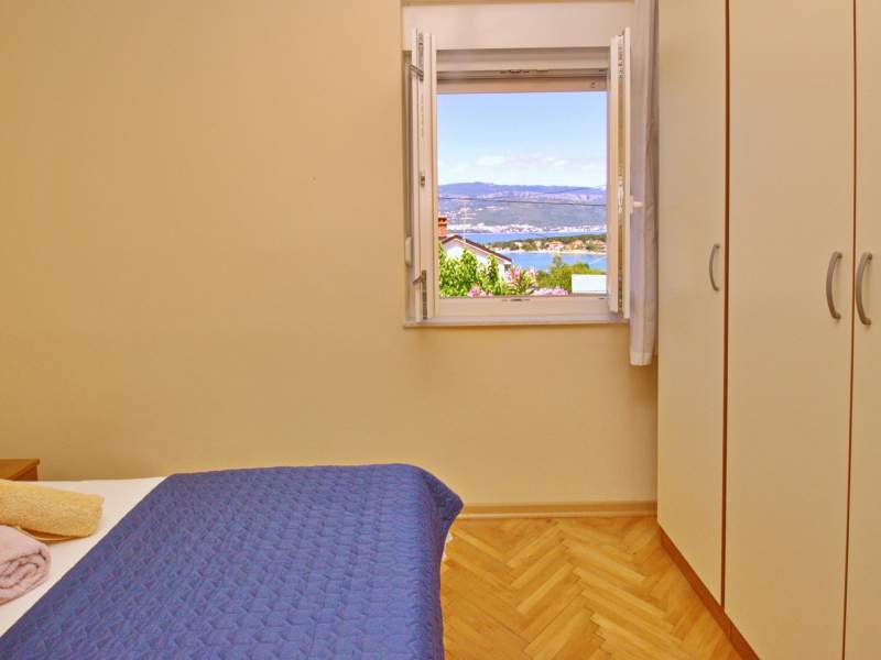 Experience a serene getaway in this spacious apartment in Šilo, Krk Island! Ideal for families or groups, this comfortable retreat located on the first floor offers three bedrooms (each with a queen-size bed and wardrobe; one with an extra pull-out sofa for one), a cozy living room with a sofa, satellite TV, and Wi-Fi, a separate dining room, and a fully equipped kitchen with an electric stove, oven, dishwasher, fridge with freezer, kettle, and coffee machine.