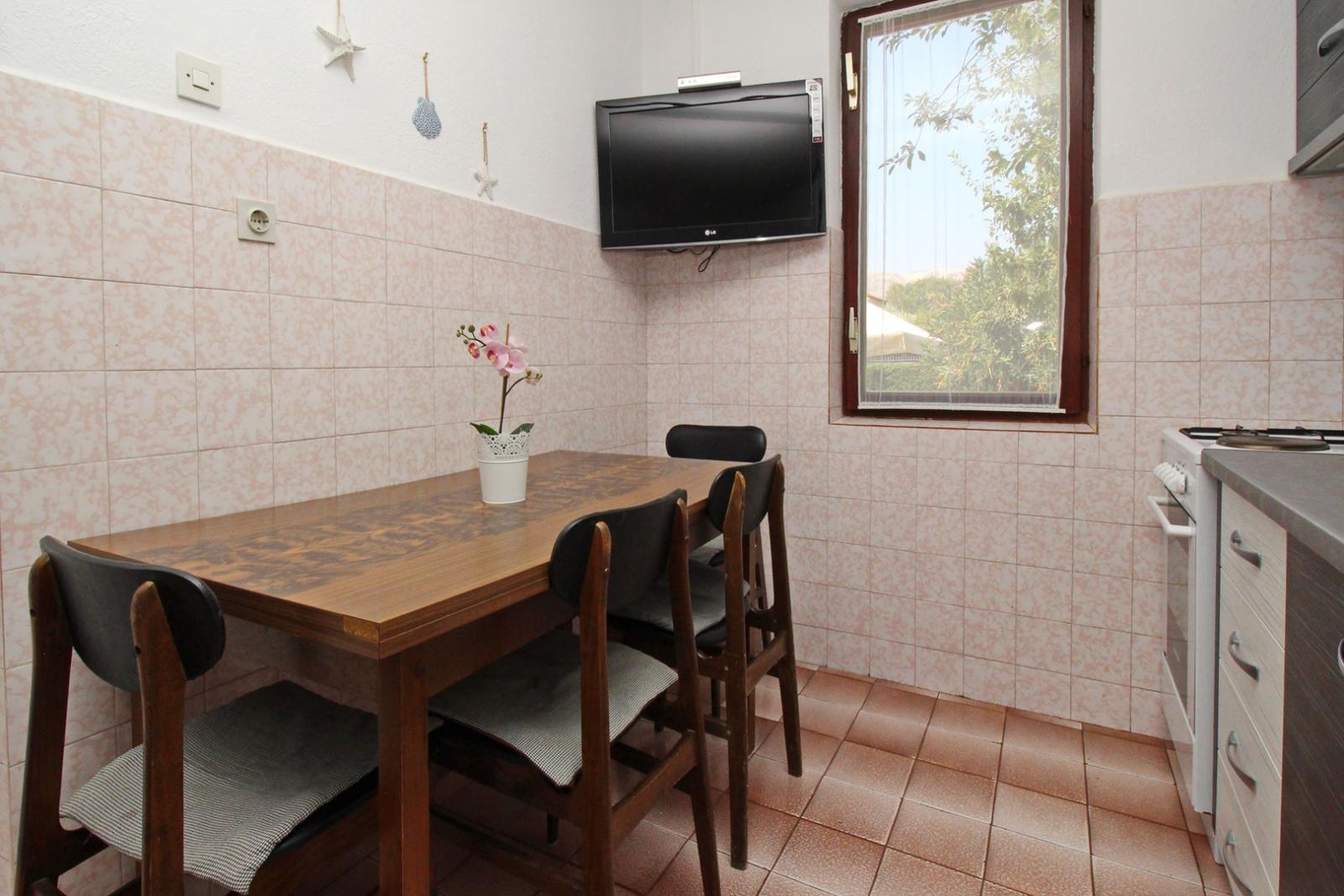 The apartment is equipped with air conditioning, SAT TV and free Wi-Fi.