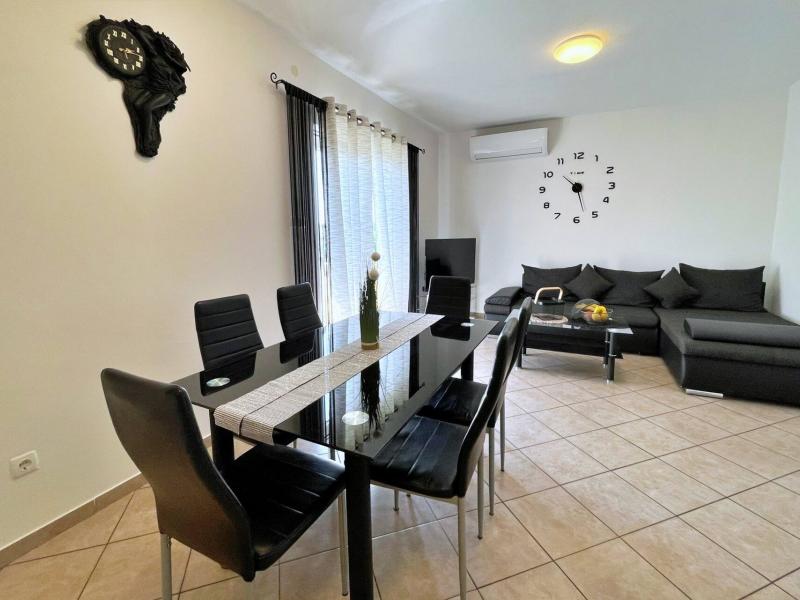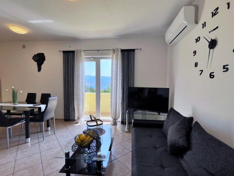 Beautiful view from the balcony, welcoming and friendly owners, perfect parking, quiet location, large courtyard. For us, a group of five, this is a spacious and nicely furnished apartment with good amenities and plenty of living space. The kitchen is very well equipped, and the balcony is a good size. The panoramic sea view is, of course, the highlight. German TV, Wi-Fi, air conditioning, and utilities are all included in the price. Although pets are allowed, there is neither pet hair nor any smell :) Good location for further excursions.
