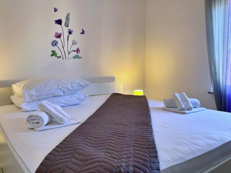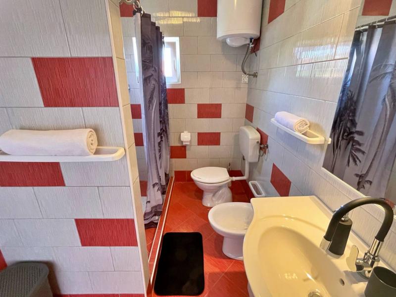 This modern three-bedroom apartment is located 1.65 km from the sea. It features a fully equipped kitchen with a gas/electric stove, oven, fridge with freezer, coffee machine, kettle, and dishwasher. The living room offers a sofa, dining table, satellite TV, Wi-Fi, and air conditioning. The bedrooms have queen-size beds, and one of the bedroom has sea view and exit to the terrace. The bathroom is fitted with a shower, toilet, and bidet. Outside, relax on the 24 m2 terrace with sea and garden views. There is also a shared BBQ area on the ground floor in the yard. Bed linens and towels are provided, and the owner also offers laundry services for the guests. A baby cot is available upon request. There is a private parking space for you in the yard. The owner lives in the same house and is there for you should you need anything!