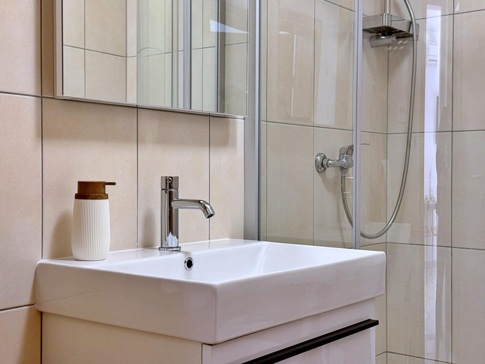 Ovaj apartman u prizemlju ima privatnu terasu od 20 m2 s pogledom na vrt. Klimatizirana kuhinja i dnevni boravak opremljeni su keramičkim štednjakom, hladnjakom s odjeljkom za zamrzavanje, Nespresso aparatom za kavu, kuhalom za vodu, mikrovalnom pećnicom, tosterom, stolom za blagovanje, kaučem na razvlačenje za dvije osobe, kabelskom/satelitskom TV i bežičnim internetom, s izlazom na terasu. Spavaća soba ima bračni krevet, a kupaonica tuš, WC i sušilo za kosu. U dvorištu se nalazi zajednički roštilj i terasa, a besplatno privatno parkiralište je ispred zgrade. Kućni ljubimci su dobrodošli uz nadoplatu, a dječji krevetić dostupan je na upit.
