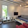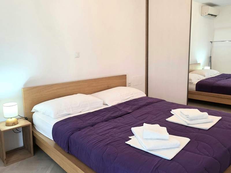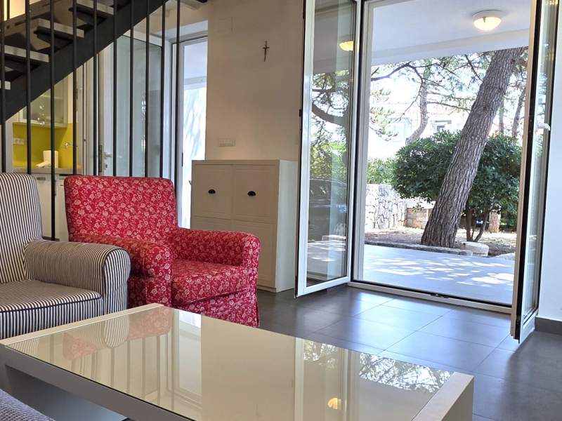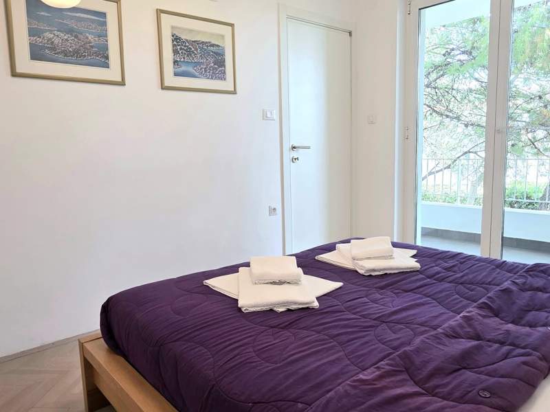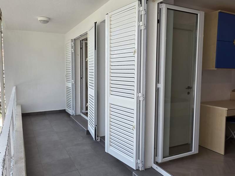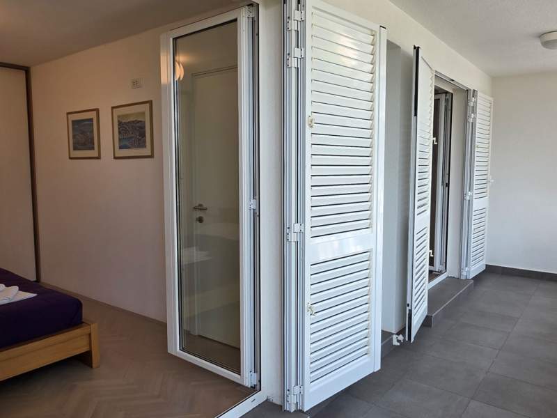 Vrlo dobra lokacija, dvije terase, vanjski tuš uz kupaonicu, klimatizacija u cijelom apartmanu, dovoljno prostora čak i za 5 osoba. Sve što je potrebno dostupno je u apartmanu, agencija je uvijek pristupačna i vrlo ljubazna, a posteljina i ručnici mijenjaju se nakon tjedan dana. Drveno stubište do gornjeg kata ima uske stepenice.