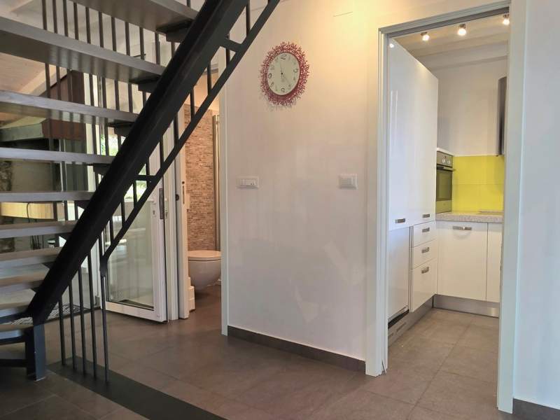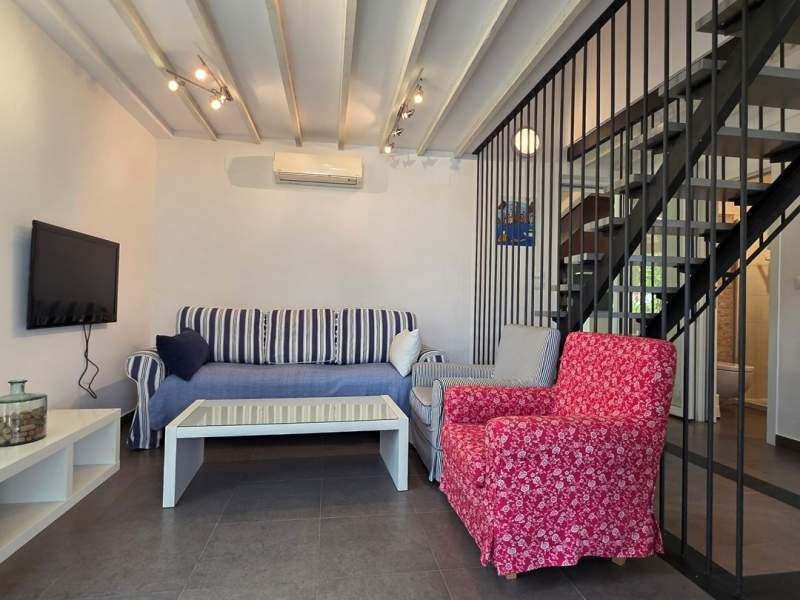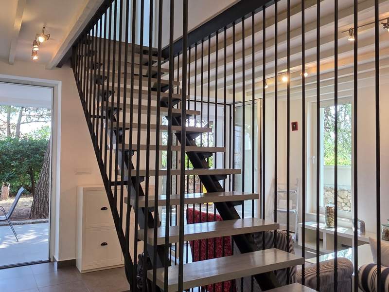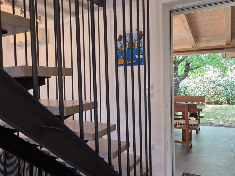 U prizemlju se nalazi dnevni boravak s dodatnim ležajem na kauču, potpuno opremljena kuhinja i kupaonica (tuš, WC).