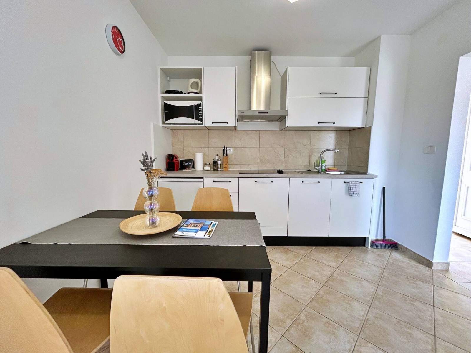 Ovaj apartman na prvom katu ima privatan balkon od 4 m2 s pogledom na more. Klimatizirana kuhinja i dnevni boravak opremljeni su keramičkim štednjakom, hladnjakom s odjeljkom za zamrzavanje, Nespresso aparatom za kavu, kuhalom za vodu, mikrovalnom pećnicom, tosterom, stolom za blagovanje, kaučem na razvlačenje za dvije osobe, kabelskom/satelitskom TV i bežičnim internetom, s izlazom na balkon. Spavaća soba ima bračni krevet, a kupaonica tuš, WC i sušilo za kosu. U dvorištu se nalazi zajednički roštilj i terasa, a besplatno privatno parkiralište je ispred zgrade. Kućni ljubimci su dobrodošli uz nadoplatu, a dječji krevetić dostupan je na upit.