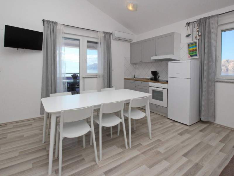 The apartment is located only 10 m from the sea and about 1 km from the center of Baska, where you can explore a variety of shops, restaurants and local attractions.