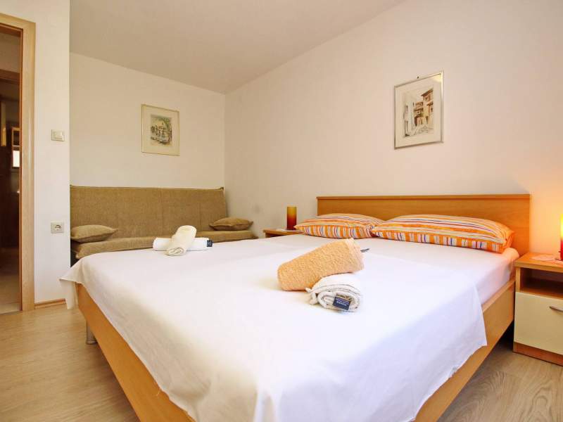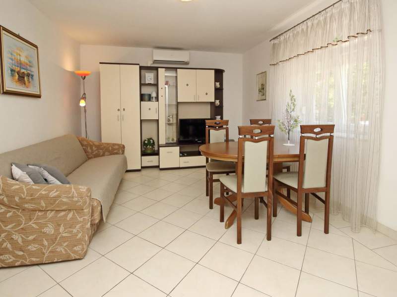 Ovaj apartman u prizemlju u Šilu na otoku Krku nudi savršeno utočište za 2-4 osobe. Zakoračite u ugodan interijer koji sadrži spavaću sobu s bračnim krevetom, ormarom i udobnim rasklopivim kaučem za jednu osobu. Privlačni dnevni boravak/blagovaona također uključuje kauč na razvlačenje za dvije osobe, stol za blagovanje, klima uređaj i satelitsku TV, što ovu sobu čini savršenim prostorom za opuštanje. Kuhinja ima električni štednjak, hladnjak sa zamrzivačem, kuhalo za vodu i aparat za kavu. U kupaonici ćete pronaći tuš, bide, WC, sušilo za kosu, a ručnici su također dostupni.