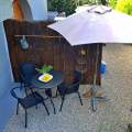 Izađite na svoju privatnu terasu od 5 m2 sa stolom za blagovanje i suncobranom, savršenu za uživanje u obrocima na svježem zraku. Pješčana plaža udaljena je samo 90 metara, a do centra je svega 450 metara. Uključeno je besplatno privatno parkirno mjesto, a možete koristiti zajednički roštilj i vanjski tuš.