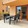 This lovely apartment spans the ground and first floor, featuring two bedrooms with queen beds and balcony access (6 m2) offering sea views. The ground floor includes a 15 m2 roofed terrace with a dining table and sea views. The kitchen is fully equipped with a ceramic stove, microwave, fridge with freezer, dishwasher, coffee machine, kettle, and dining table. The living room offers air conditioning, satellite TV, a sofa, and terrace access. The apartment has a bathroom with a shower, toilet, and hairdryer, plus an additional toilet. Guests enjoy free Wi-Fi, private parking, a gas BBQ, and a shared yard with a children's playground. Located just 160 m from a concrete and pebble beach, the house also features floor cooling and heating for year-round comfort. (English)