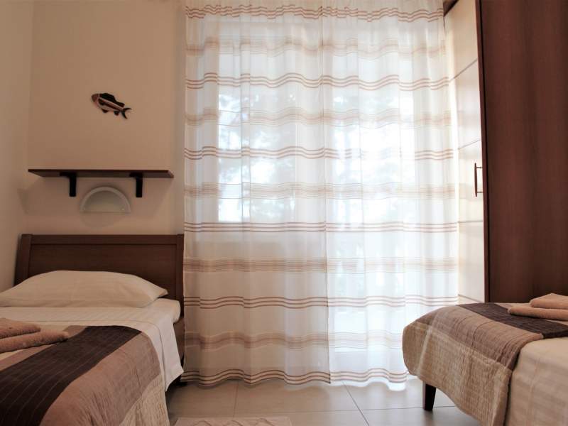 Questo appartamento con due camere da letto si trova al piano terra rialzato di una casa a soli 15 metri dal mare e dalla spiaggia, con vista mare e vicino a un ristorante e a un centro immersioni. La cucina completamente attrezzata include fornelli elettrici/a gas, mini-forno, frigorifero con congelatore, macchina per il caffe, bollitore, tostapane, lavastoviglie e frullatore a immersione. Il soggiorno/sala da pranzo dispone di divano, tavolo da pranzo, TV satellitare, Wi-Fi e aria condizionata. Una camera da letto ha un letto matrimoniale, mentre l'altra ha due letti singoli. Il bagno e dotato di doccia, WC e asciugacapelli. Godetevi la terrazza coperta di 25 m2 con tavolo da pranzo, ombrellone, lettini e vista mare. Un giardino con barbecue e doccia esterna completa lo spazio esterno. E disponibile un parcheggio privato e sono forniti anche lenzuola, asciugamani e ferro da stiro.